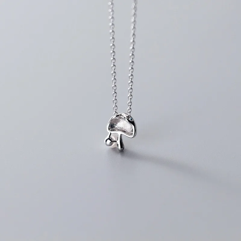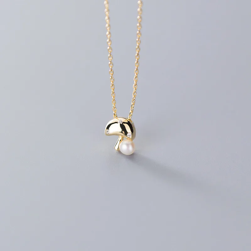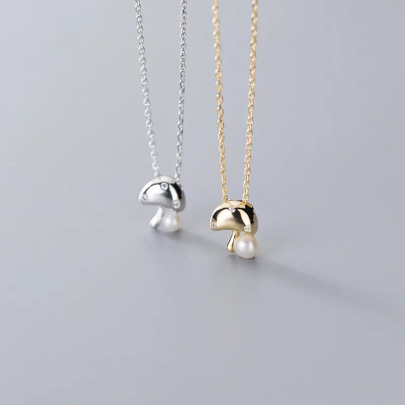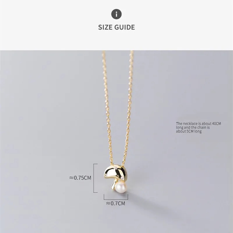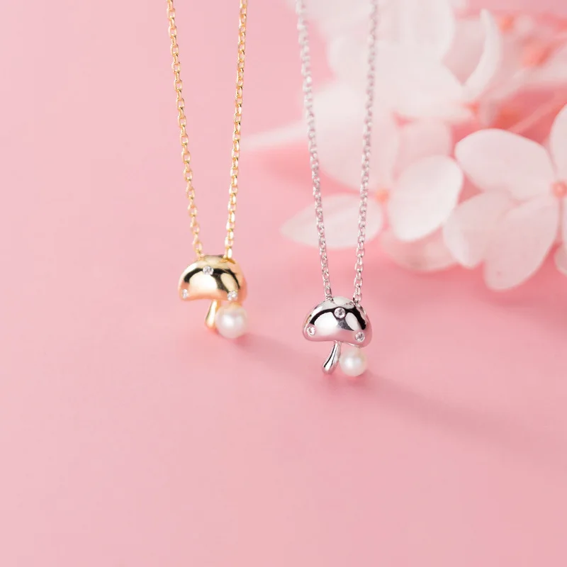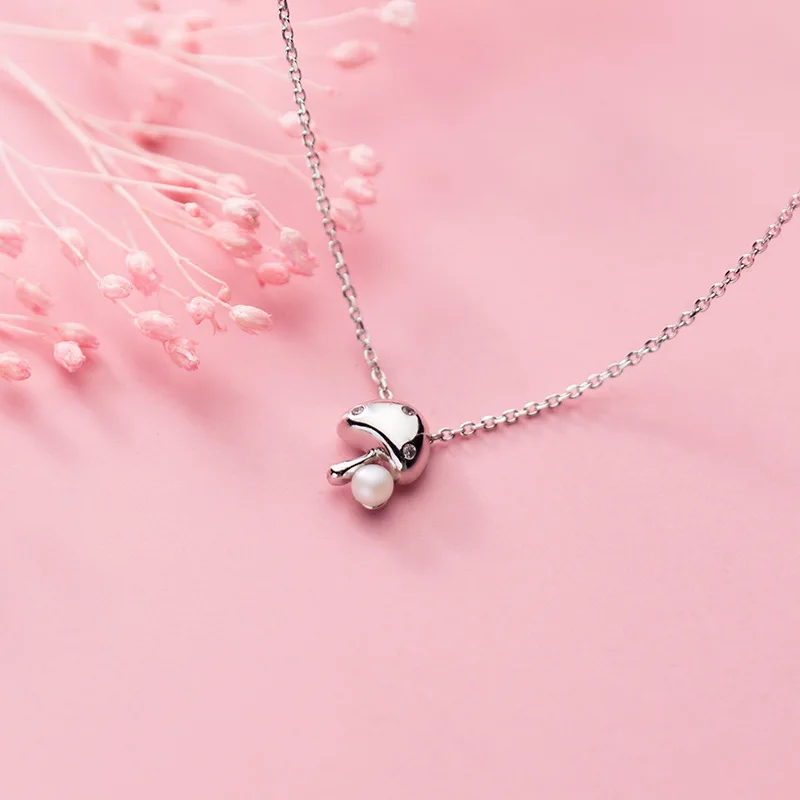 YIZIZAI Classic Real 925 Sterling Silver Cute Mushroom Pendant CZ Zircon Pearl Necklace Ladies Fine Chain Party Jewelry Gift