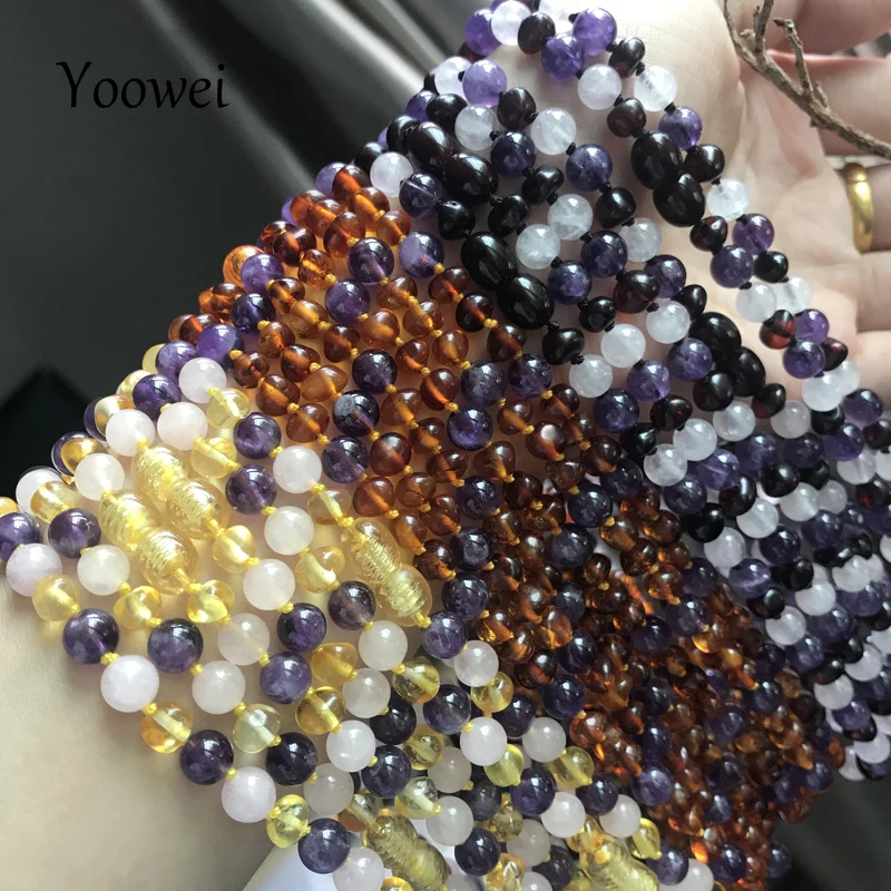 Top-Rated Baltic Amber Necklace/Bracelet Wholesale Baby Adult 6mm Natural Amethyst Quartz Gemstone Amber Jewelry Supplier