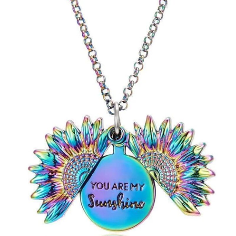 You Are My Sunshine Engraved Necklace Inspirational Sunflower Pendant Open Locket Necklace Jewelry Gift For Women Girlfriend