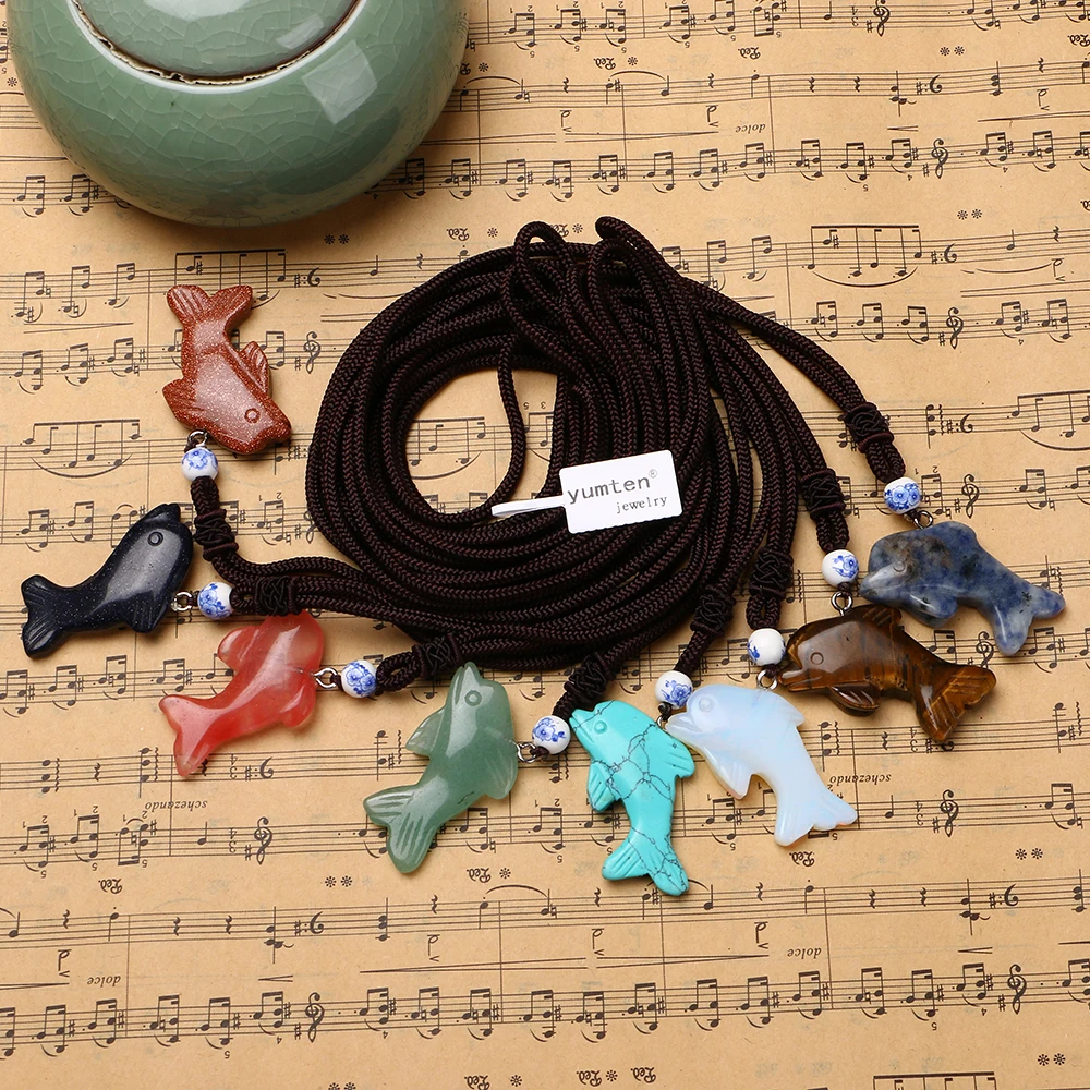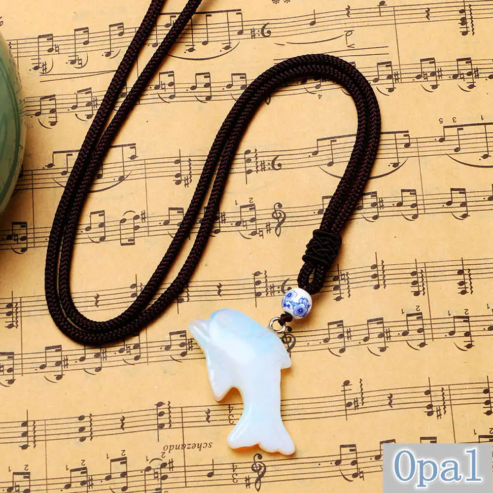 Fashion Necklace Nature Stone Jewelry Beautiful Dolphin Rhinestone Crystal Pendants For Women Opal Gemstone Pendant