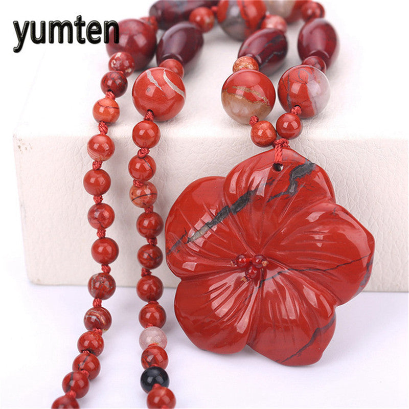 Fine Necklace Red Jasper Flowers Pendant Hand Carved Popular Fashion Accessories Soy Luna Linkin Warcraft Sailor Rosary