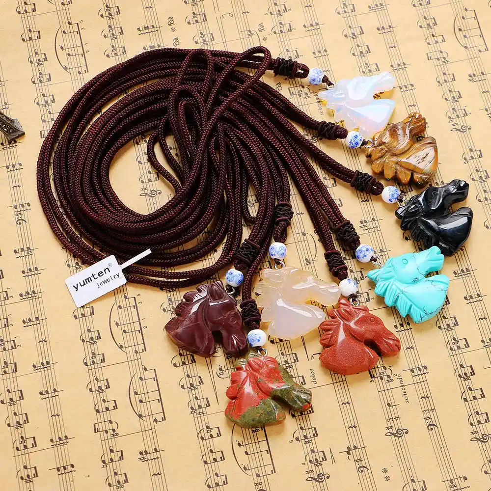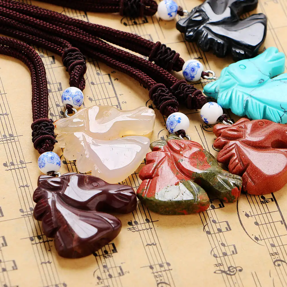 Party Necklace Horse Head Pendant Natural Crystal Fine Popular Jewelry Popular Accessories Chocker Bijoux Angel Pingente
