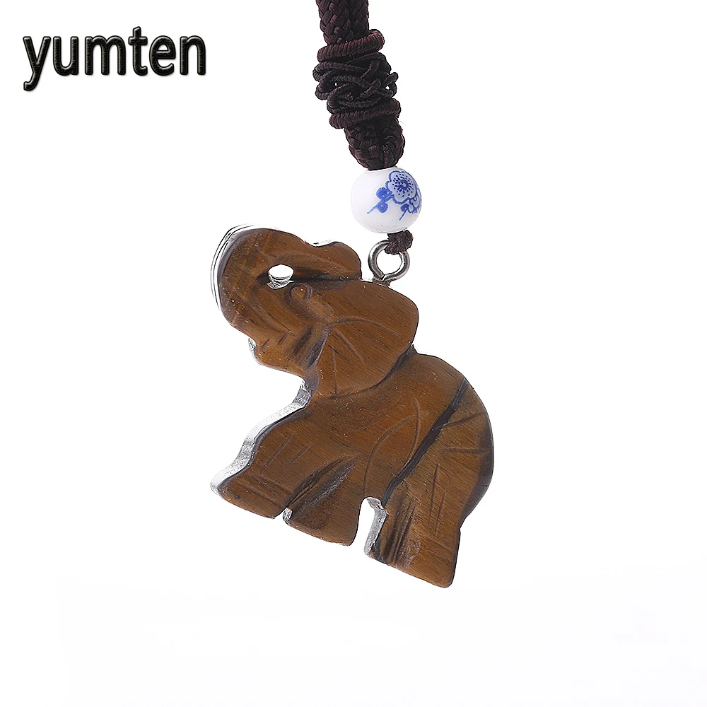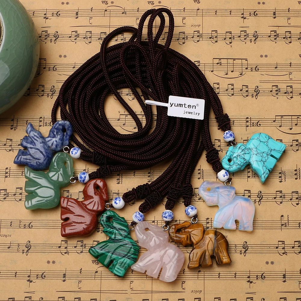 Party Necklace Elephant Pendant Crystal Natural Stone Jewelry Gem Peridot Opal Teen Wolf Stainless Steel Sieraden Moon