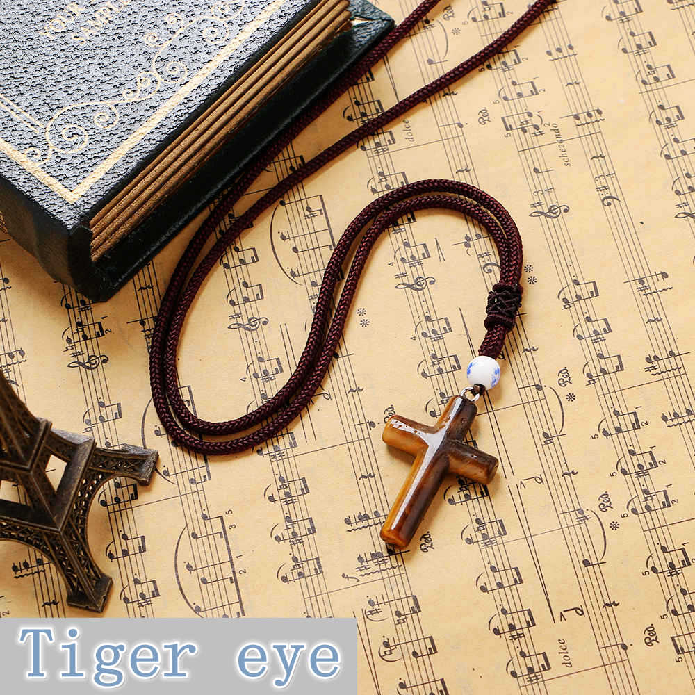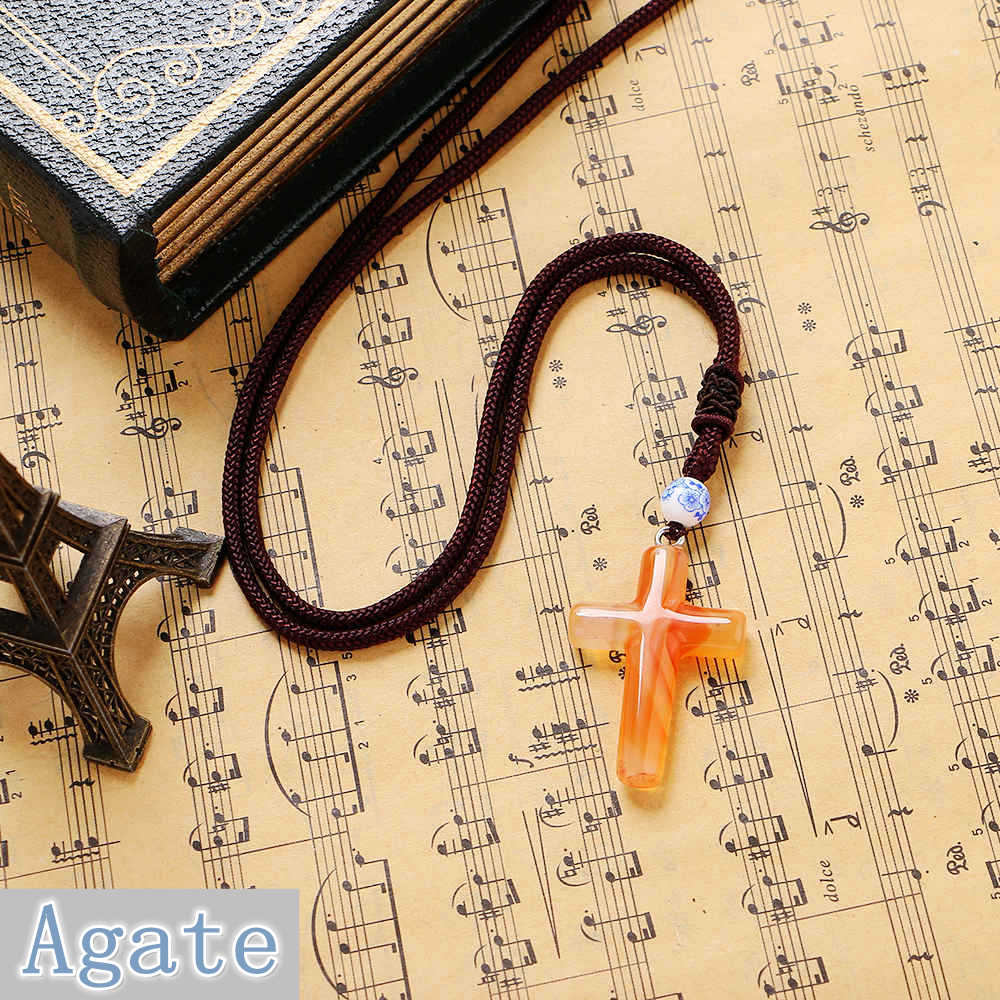 Nature Opal Gemstone Pendant Agate Cross Christian Jewelry men women Crystal Necklace Hot Sale New Fashion Classic Topaz