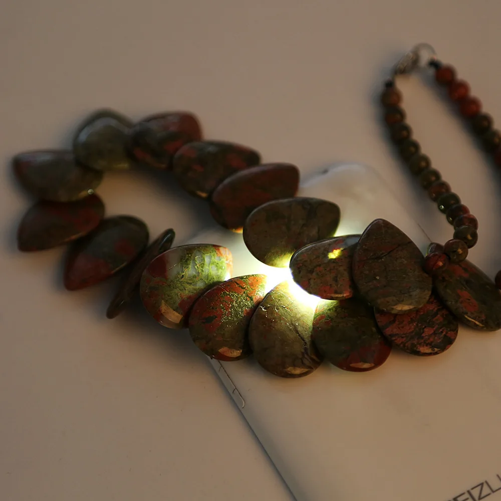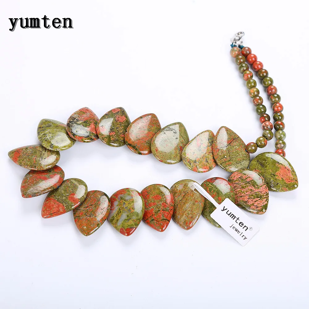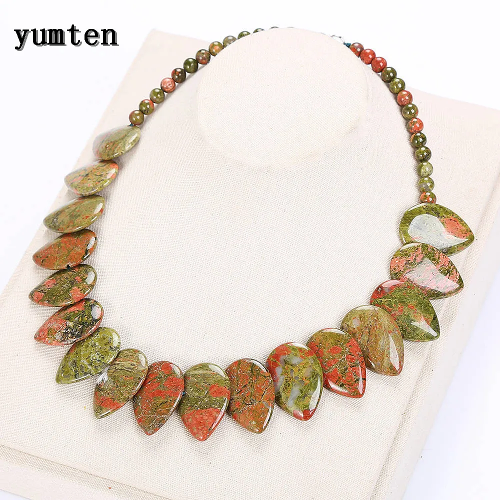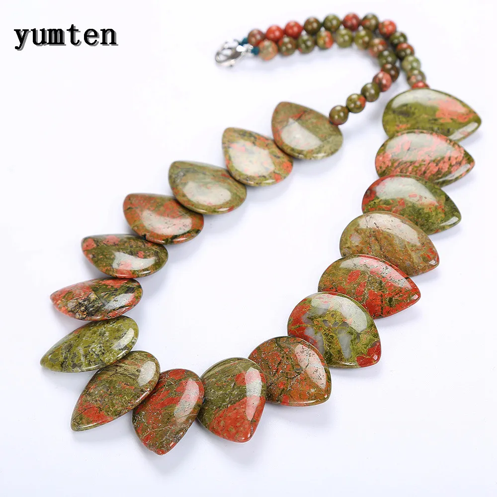 Unakite Men Necklace Women Collares Mujer Choker Flower Pendant Charms Female Jewelry Colar Masculino Natural Stone Neck