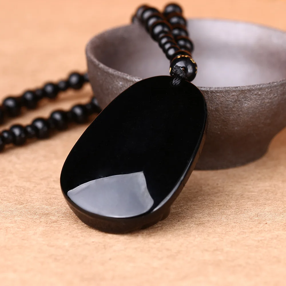 Unique Bead Chain Natural Obsidian Scrub Lucky Pendants Necklace For Men Women Transhipped Buddha Head Amulet Jewelry