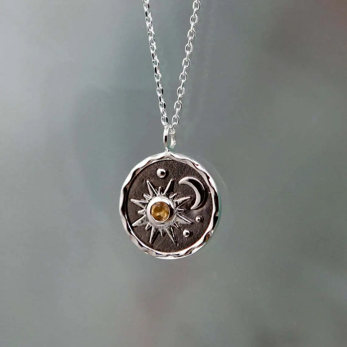 Yungqi Vintage Crystal Sun Totem Moon Pendant Necklace Women Goth Charm Coin Disc Choker Chain Necklaces Jewelry Femme collar