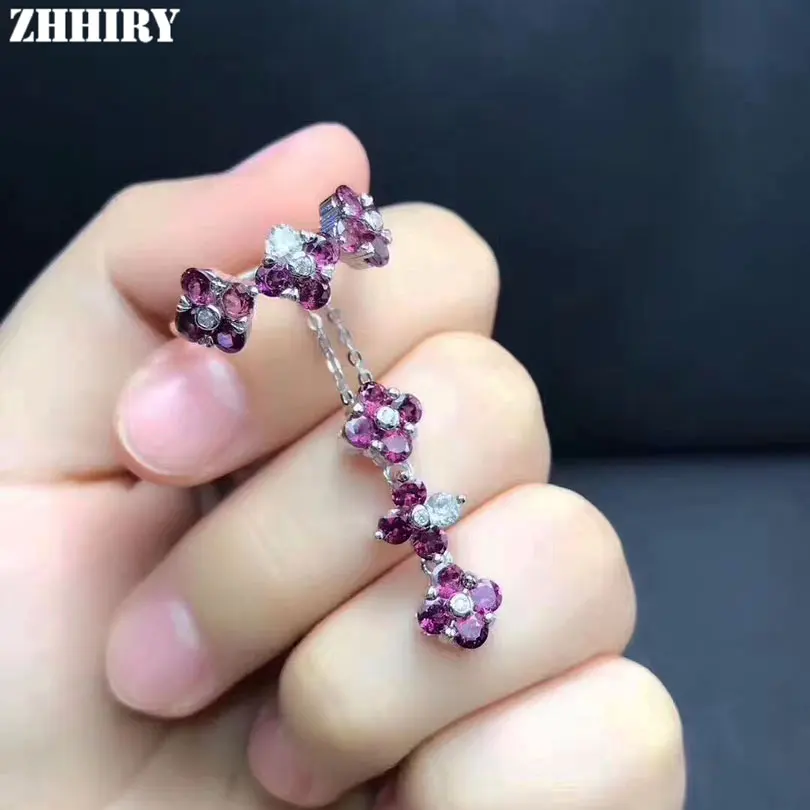 Women Pyrope Jewelry Sets Purple Garnet Genuine 925 Sterling Silver Ring Necklace Pendant Chain Set Gemstone Fine Jewelry