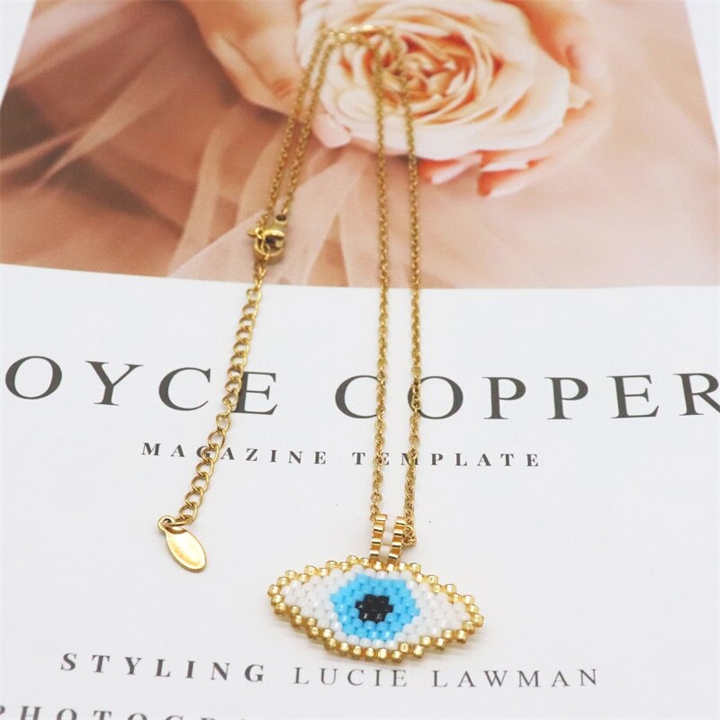 ZHONGVI Women Jewelry Handmade Gift Evil Eye Necklace Miyuki Gold Chain Necklaces Delica Seed Beads Jewellry