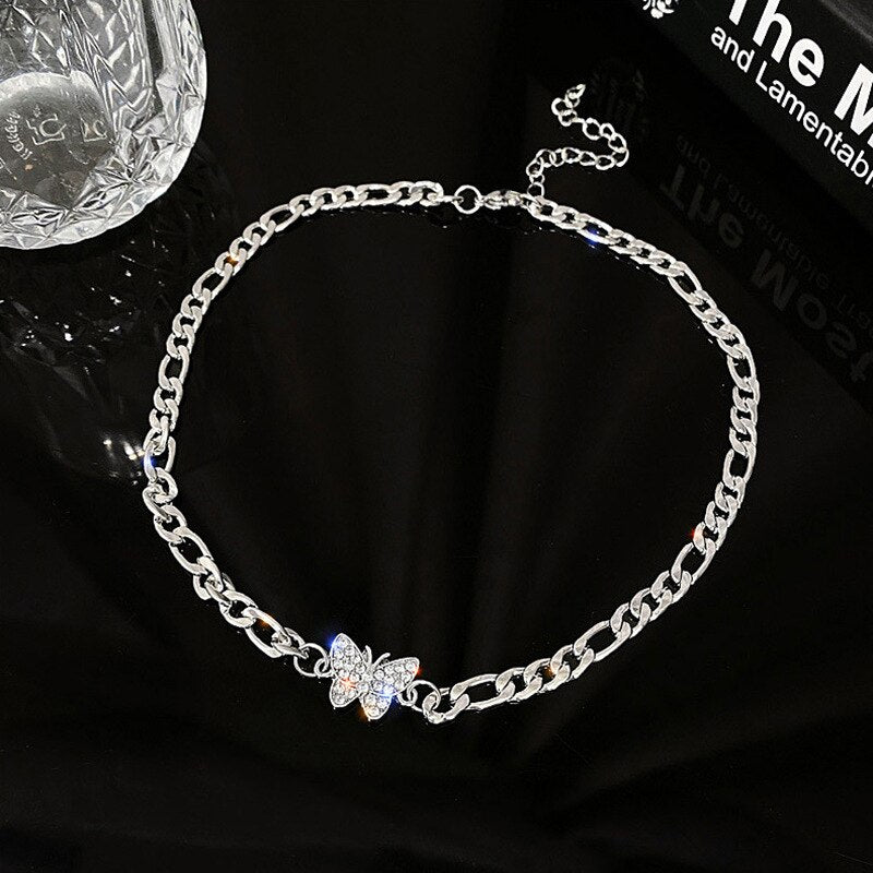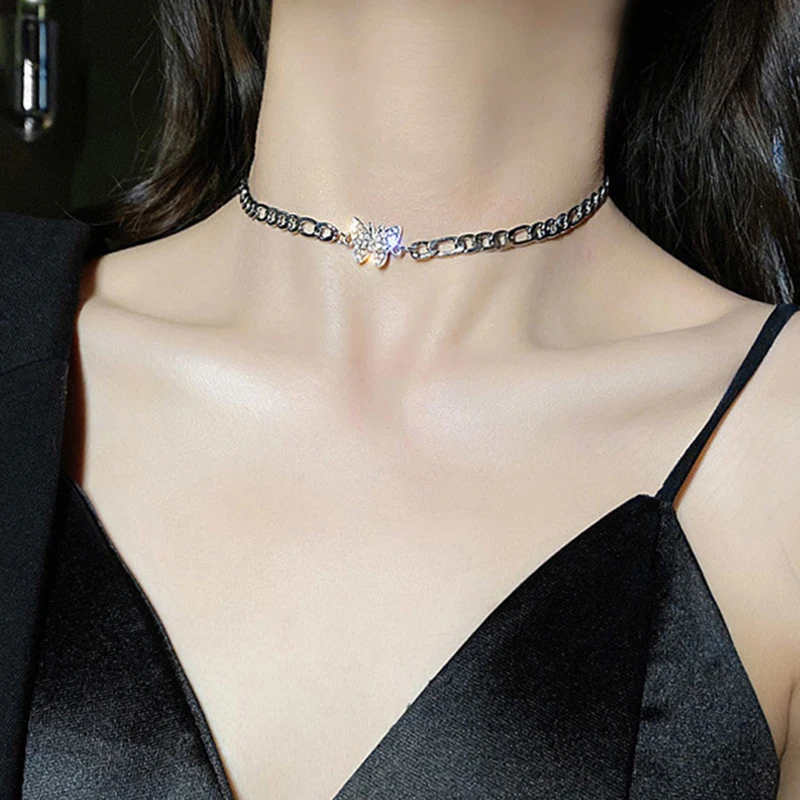 Zircon Butterfly Pendant Choker Light Aesthetic Niche Clavicle Silver-plated Necklace Jewelry Women Gifts