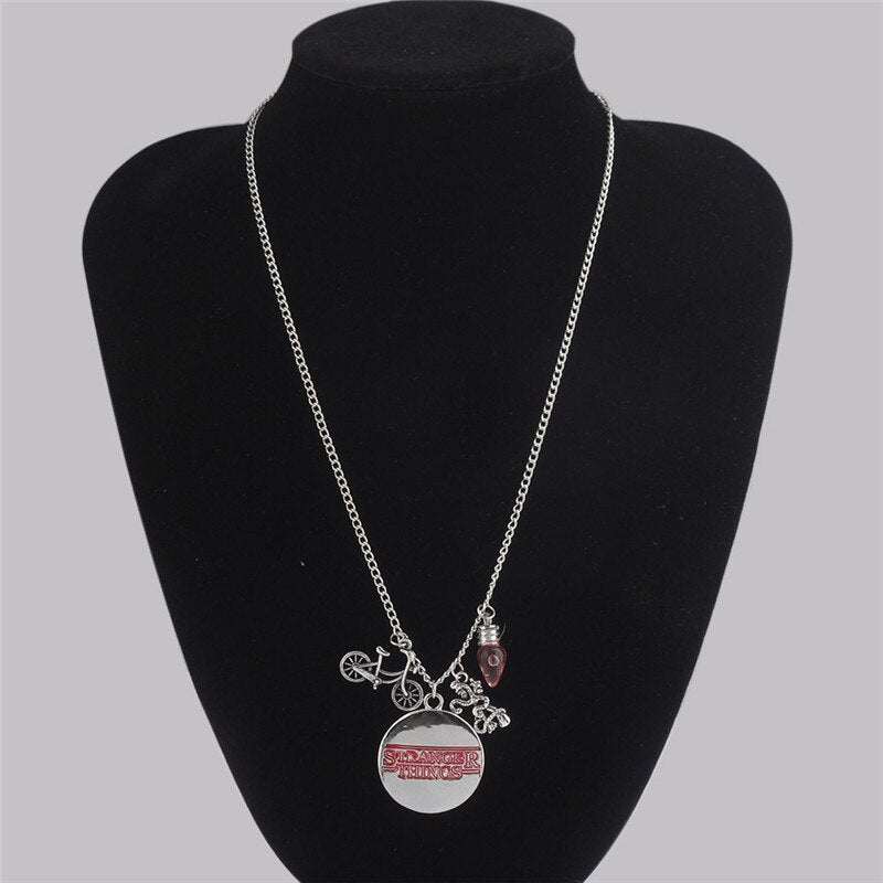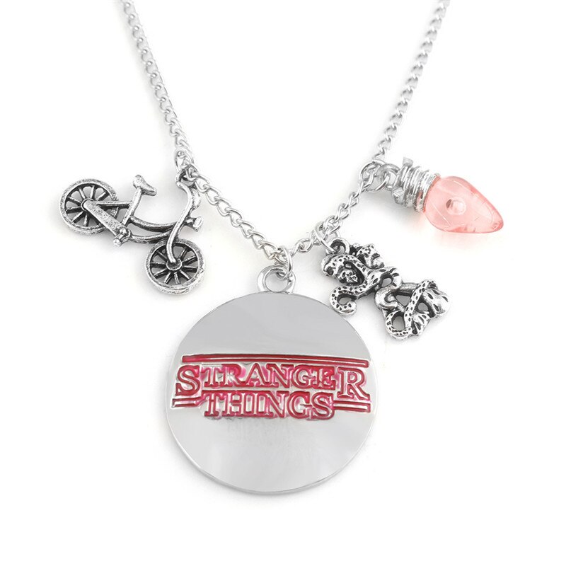 ZRM Stranger Things Charm Necklace Letter Bulb Monster Bicycle Bike Pendant Necklaces Women Men Gifts Jewelry