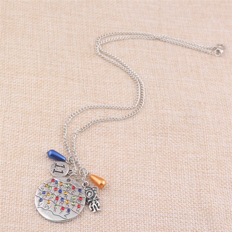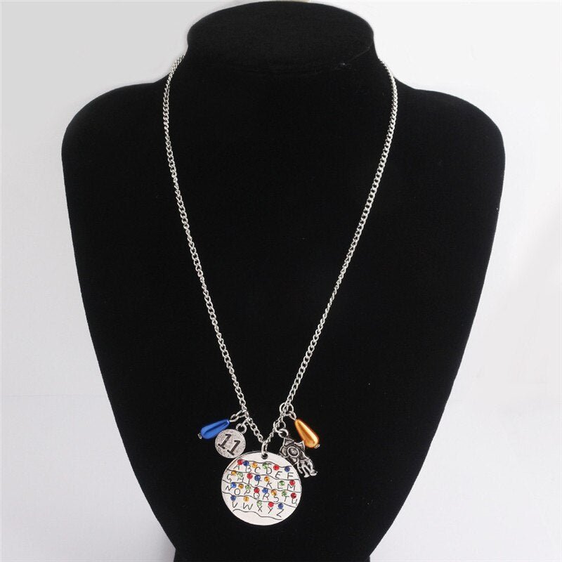 ZRM Stranger Things Necklaces Montauk 11 Alphabet Light Wall Monster Pendant With Crytal Lady Girl Choker Cosplay Accessories