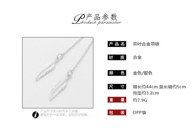 ZYZQ Come Lovely Double Leaf Necklaces Short Style Choker Necklaces Enthic Tassel Leaf Design Lots&Bulk Hot