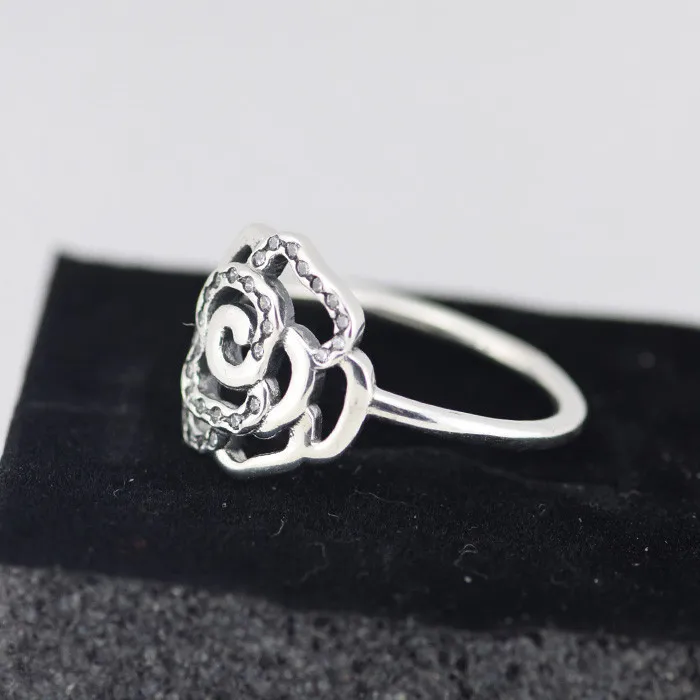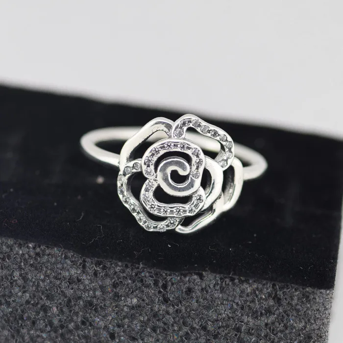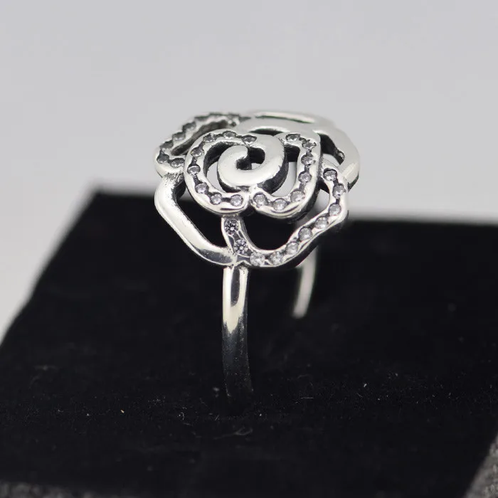 100% Authentic 925 Sterling Silver Jewelry Rose Rings with Clear Cubic Zirconia