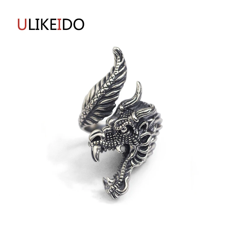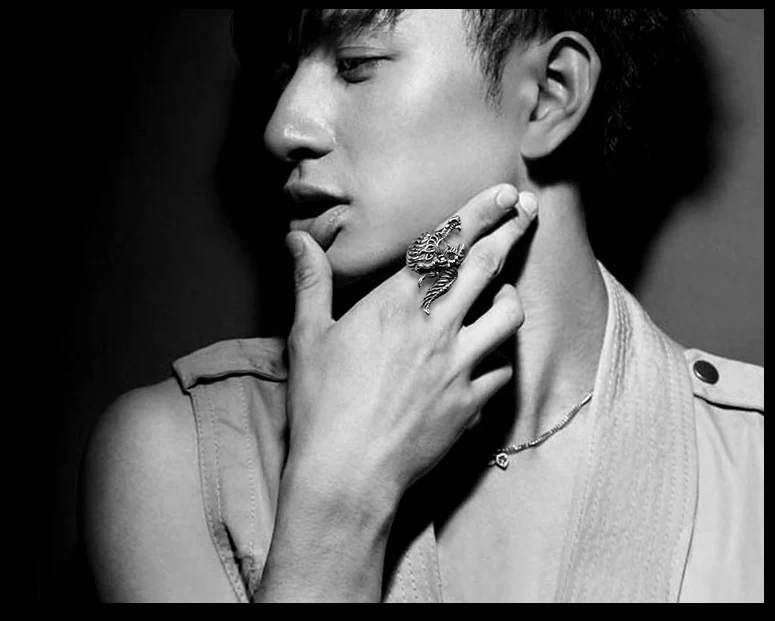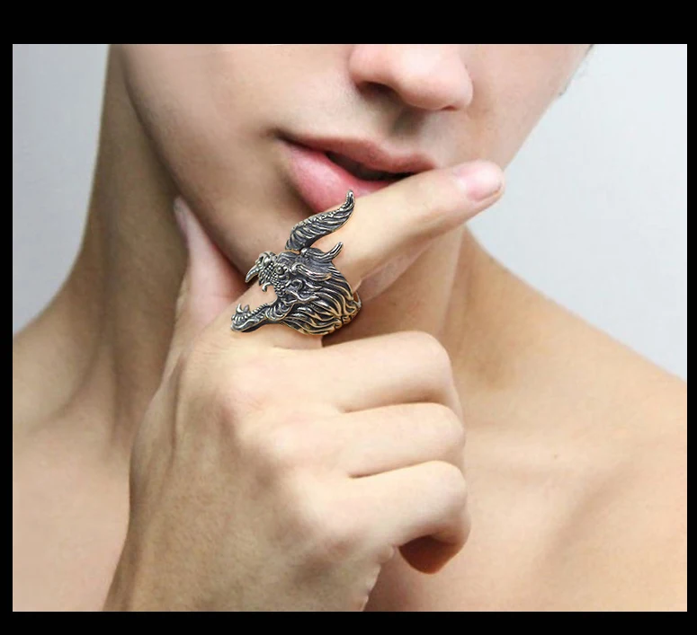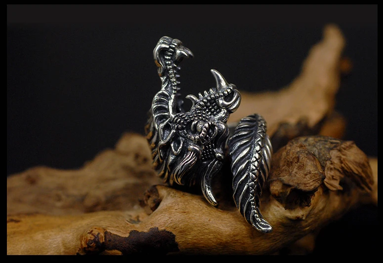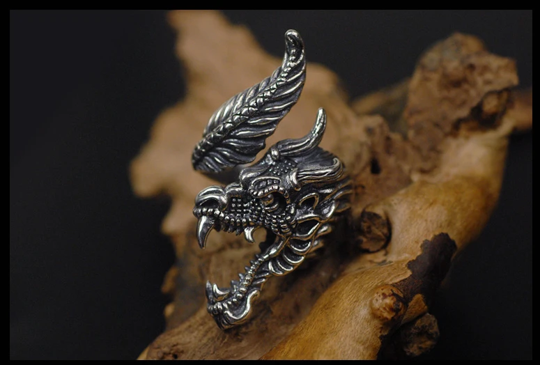 100% Pure 925 Sterling Silver Jewelry Dragon Rings Wide Version Men Signet Ring For Women Fine Gift 1142