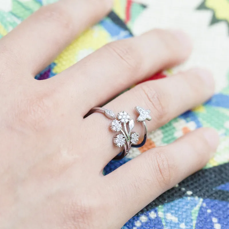 2020 European and American popular butterfly new mini opening lady ring dandelion index finger ring stainless steel