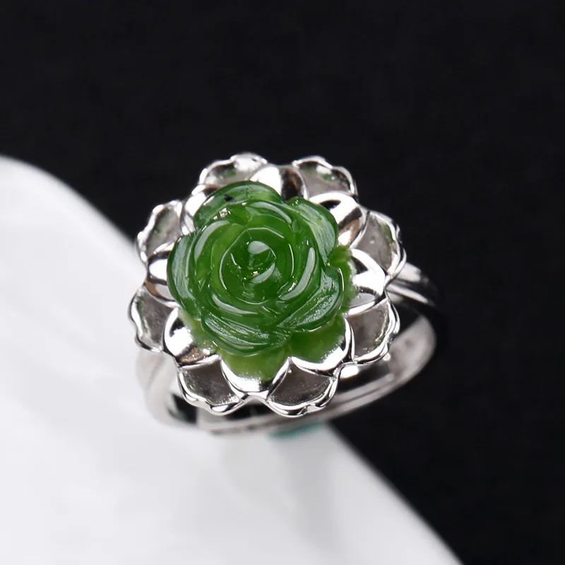 2020 Fashion Silver S925 Pure Silver Antique Mosaic And Field Jasper Rose Lady High-end Open Ring Ring Wholesale