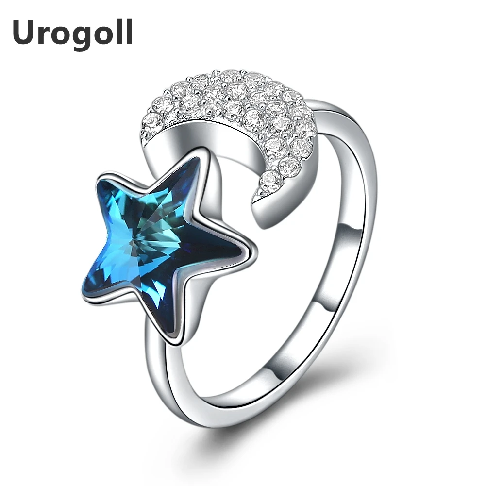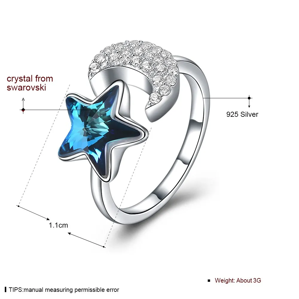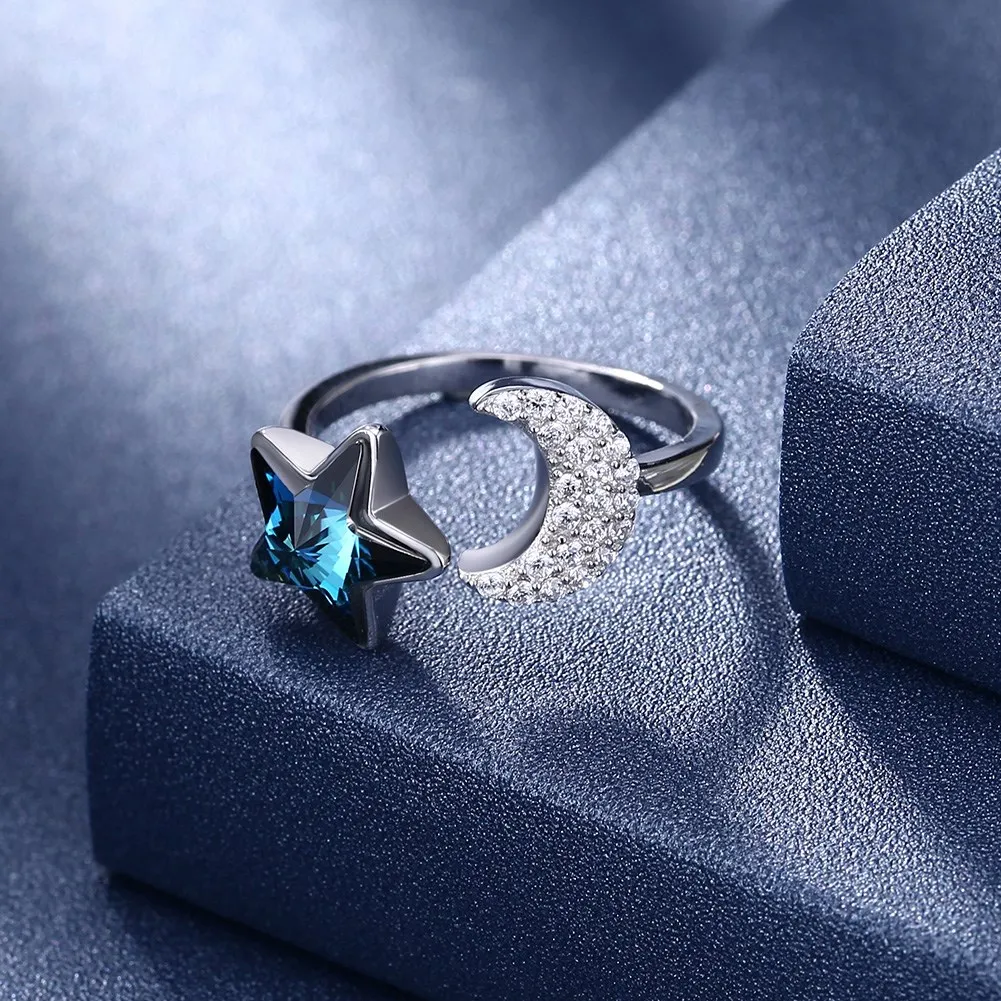 2020 New Arrival S925 Fashion Pure Silver Crystal Elements Stars Moon Modeling Jewelry Opening Ring Women Gift