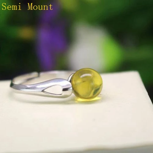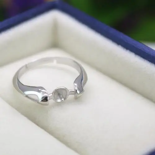 8x8mm Pearl Cabochon Semi Mount Engagement Wedding Women Ring Sterling Silver 925 Wholesale Adjustable Open