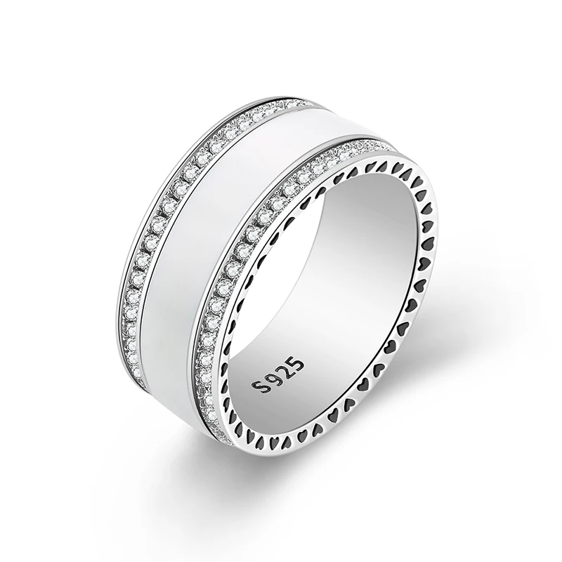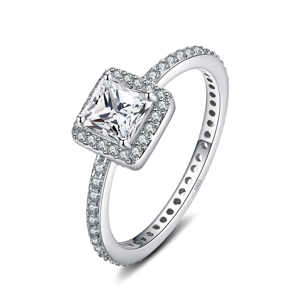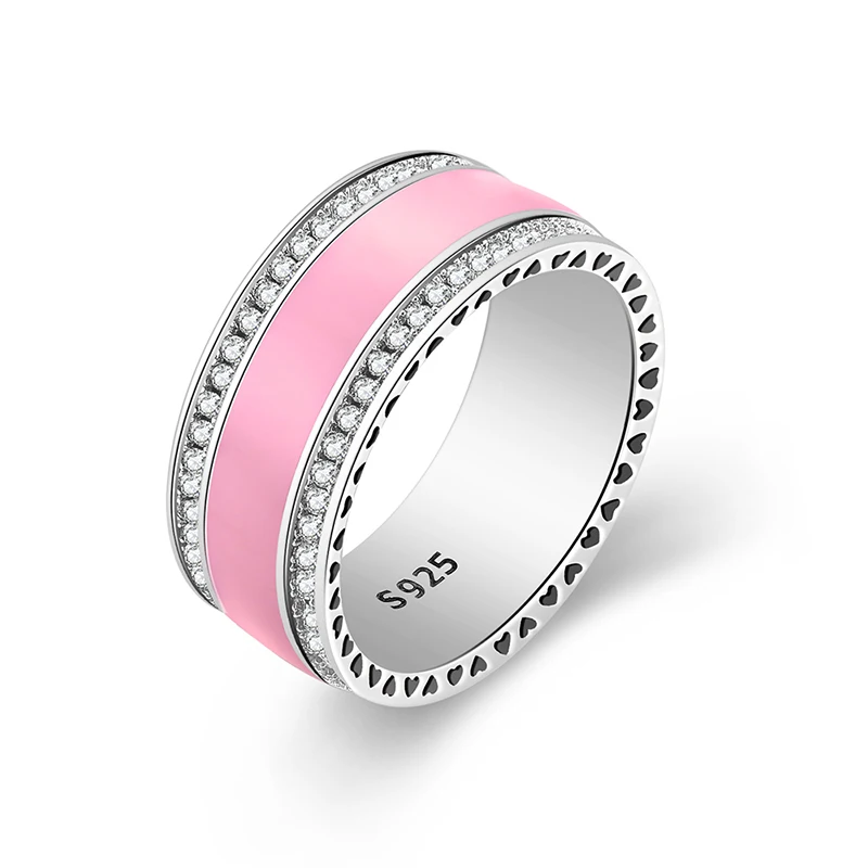 925 Silver Ring Charm Women Princess Crown Heart Enamel Big Stone Crystal Finger Rings For Women Jewelry