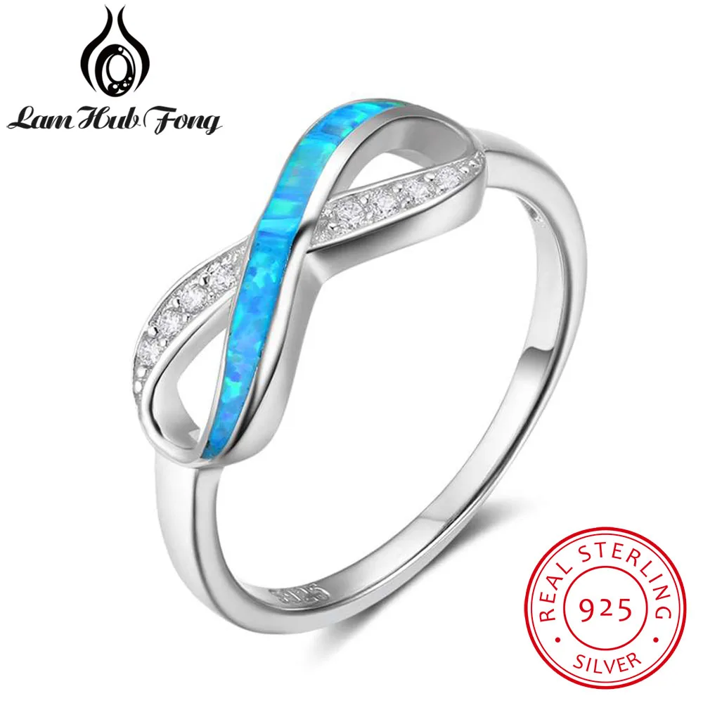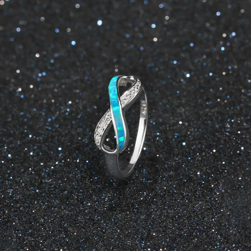 925 Sterling Silver Infinity Ring Blue Fire Opal Rings Stone Zirconia Birthd Gifts for Women Wholesale Statement Anniversary