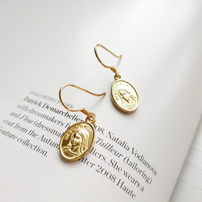 925 sterling silver Maria gold oval earrings simple fashion wild gold portrait drop earrings for women oval jewelry for charms