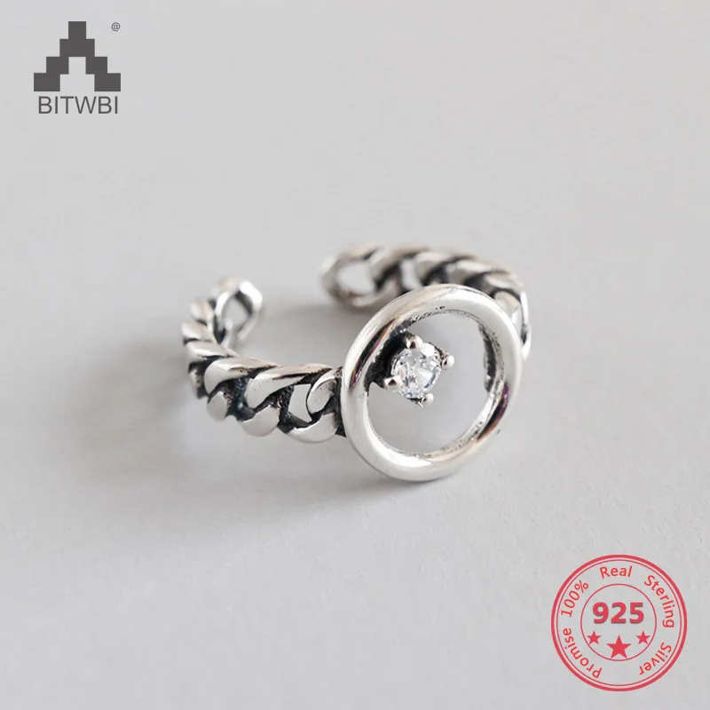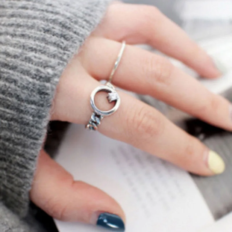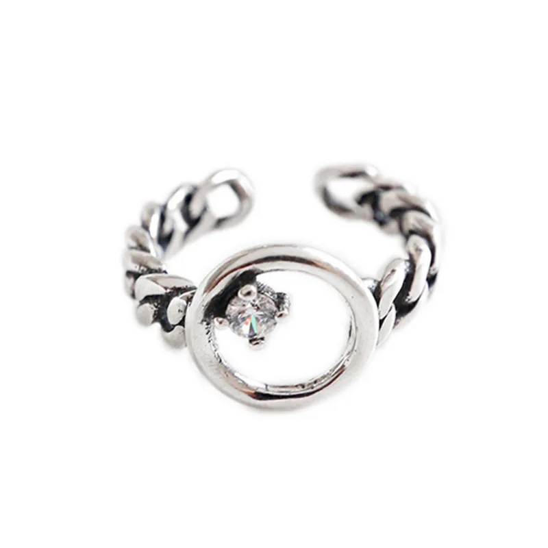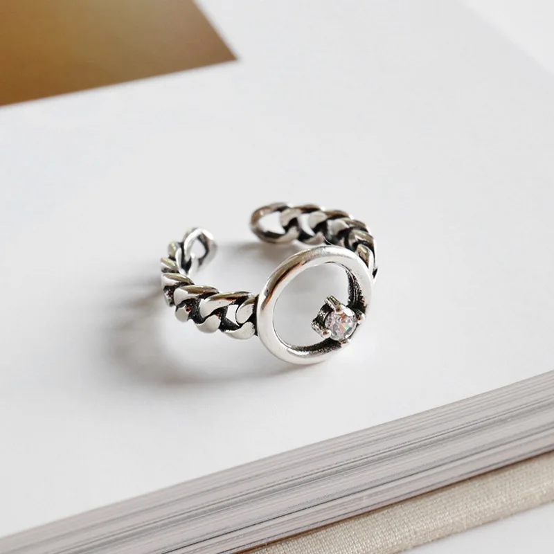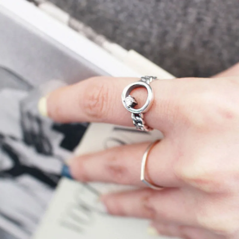925 Sterling Silver Open Ring For Women Chain With Cubic Zircon Rings Punk Style Bijoux Femme