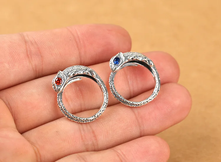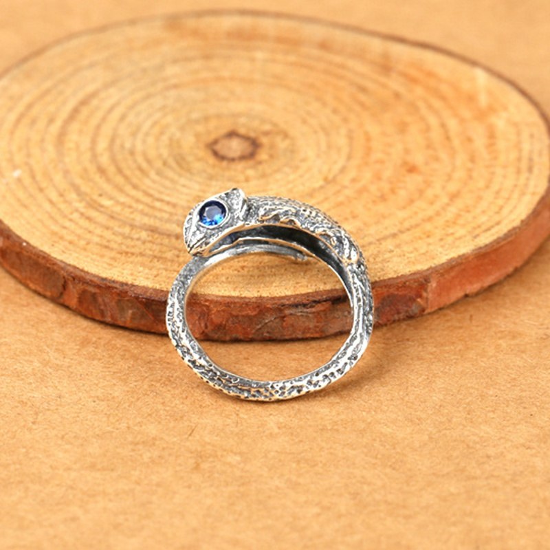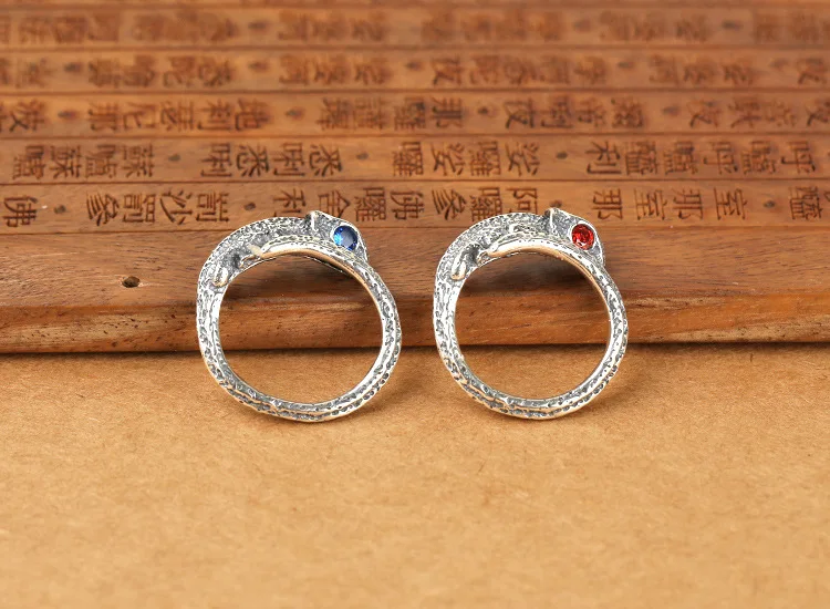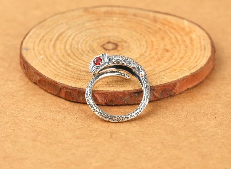 925 Sterling Silver Retro Chameleon Garnet Open Ring Women Thai Silver Couple Gift Adjustable Tail Finger Ring ZY259