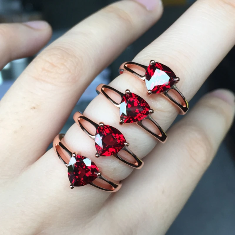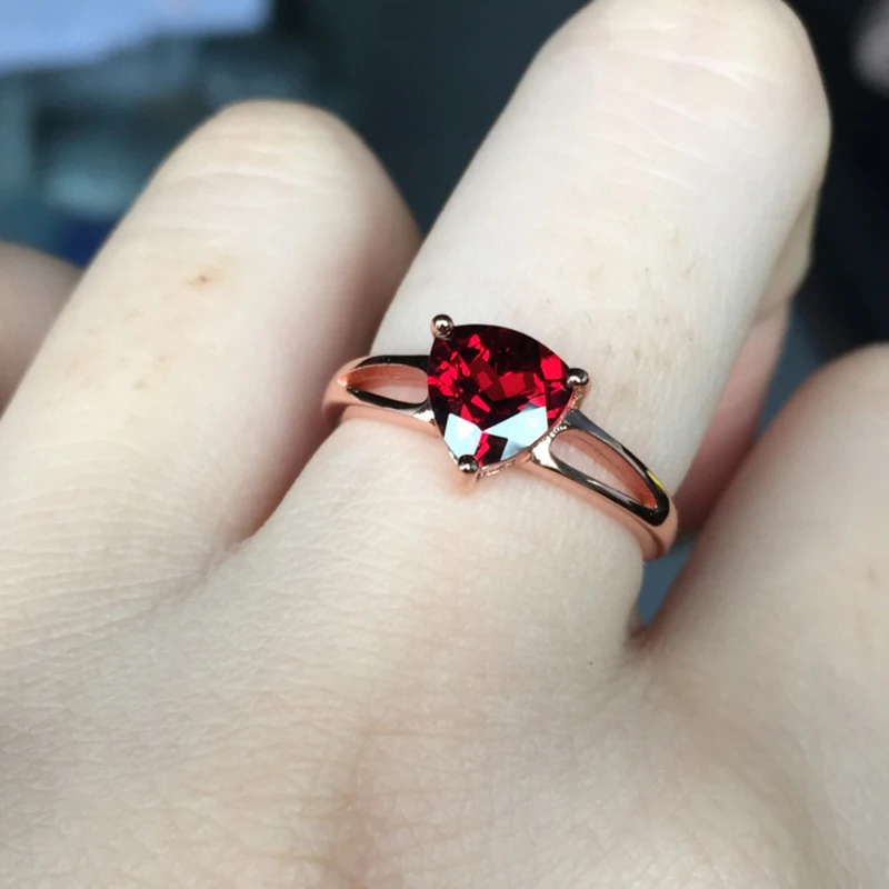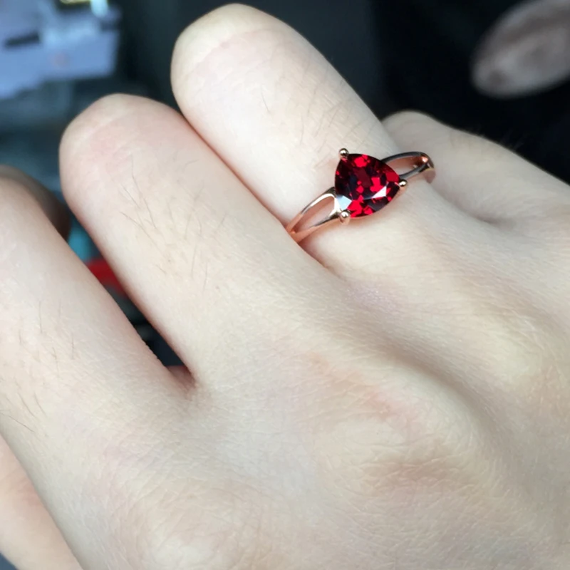 925 Sterling Silver Triangle Garnet Ring for Anniversary Red Natural Gemstone 7*7 mm