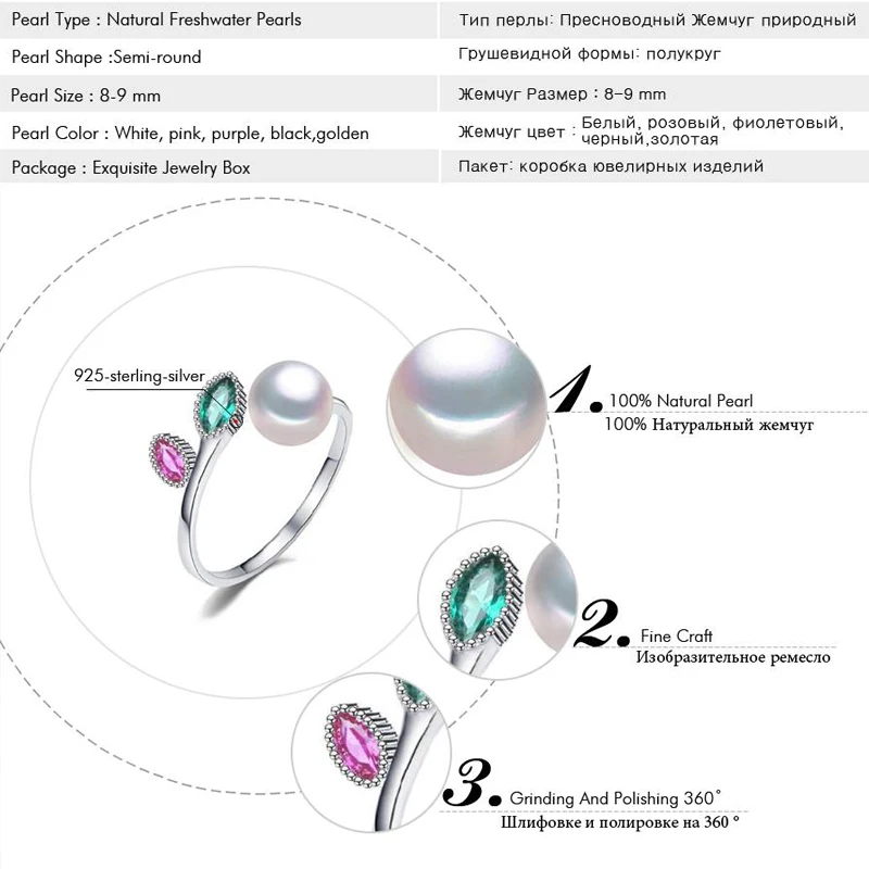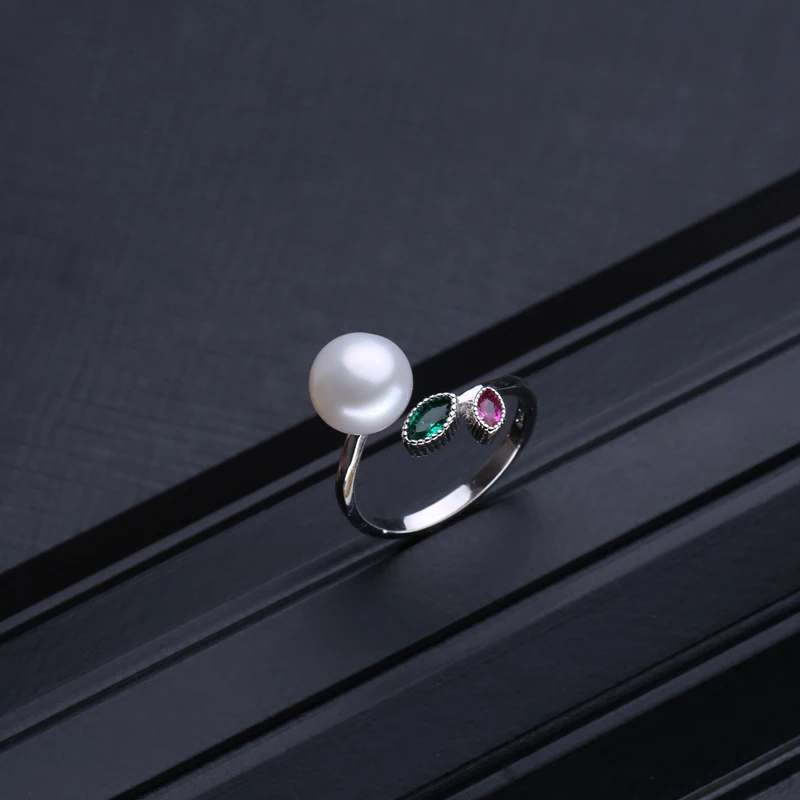 Pearl wedding ruby rings,pearl jewelry 925 sterling silver Black White emerald Ring for Women Gift,jewelry box