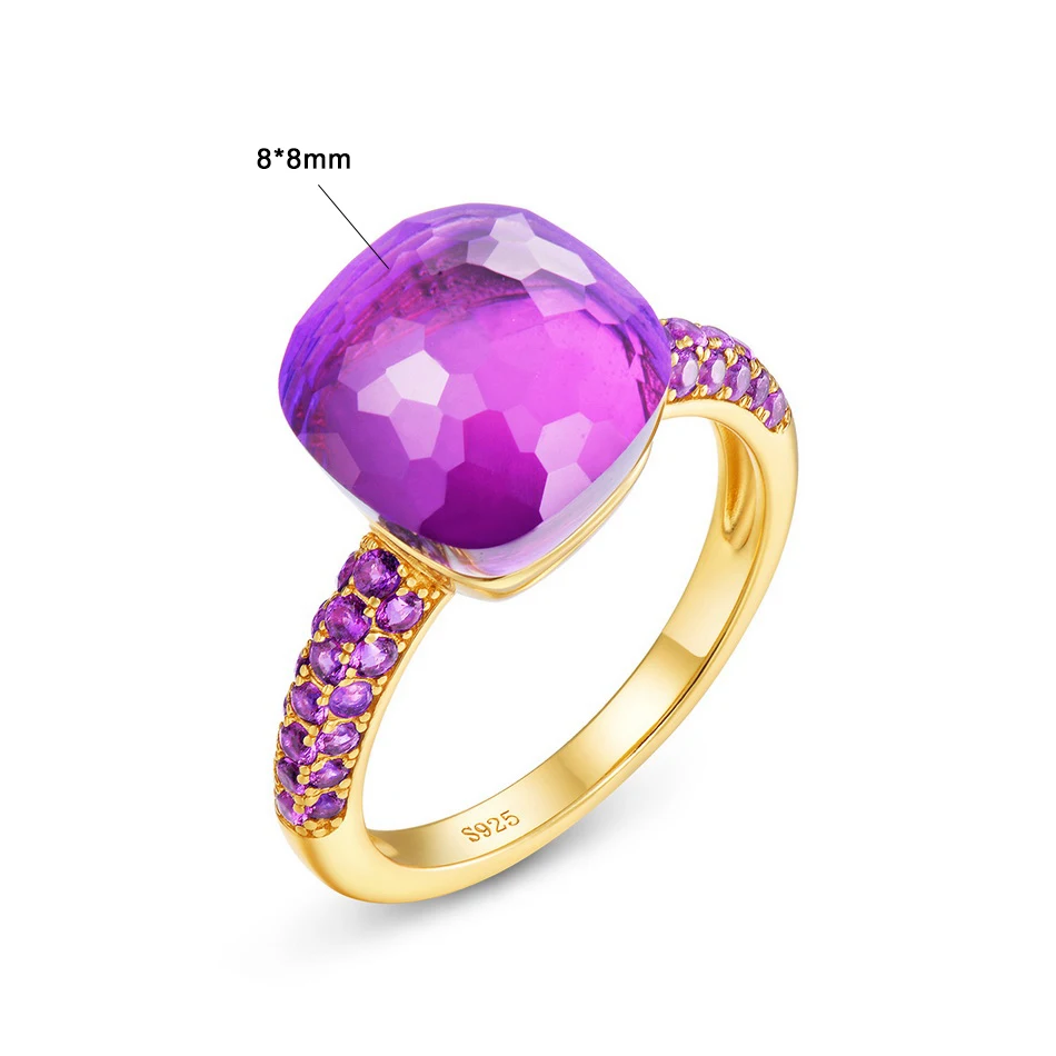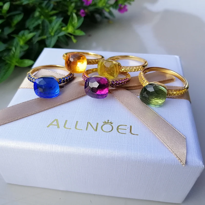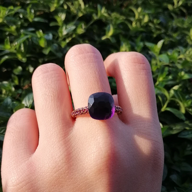 ALLNOEL Candy Sweety Ring Solid 925 Steling Silver Rings for Women Elegant Synthetic Amethyst Fuchsia Nano Spinel Ring 2021