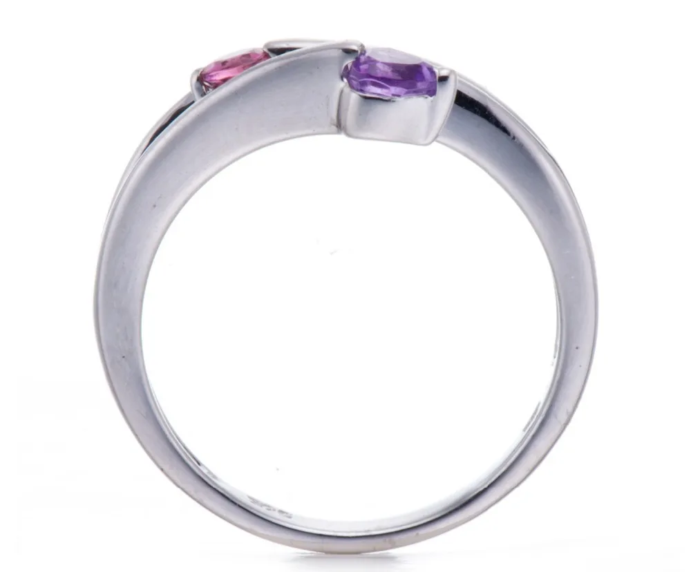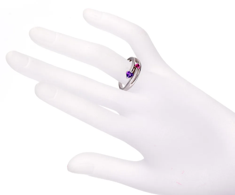 Hutang Stone Jewelry Natural Amethyst Pink Tourmaline Gemstone Solid 925 Sterling Silver Heart Ring Summer Style Fine Jewelry