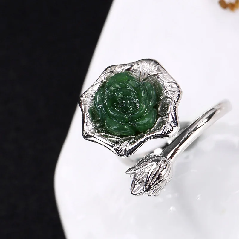 Anel Feminino Real 2020 New S925 Pure Inl Hetian Lotus Cloisonne Restoring Ancient Ways Ms Wholesale High-grade Opening Ring