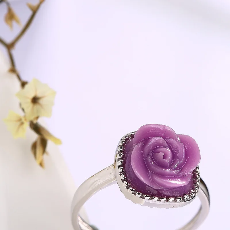 Anel Feminino Rose S925 Pure Silver, Mica Inlaid Rose Ring, Korean Version, Simple Temperament, Lady's Opening Ring Wholesale.