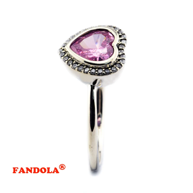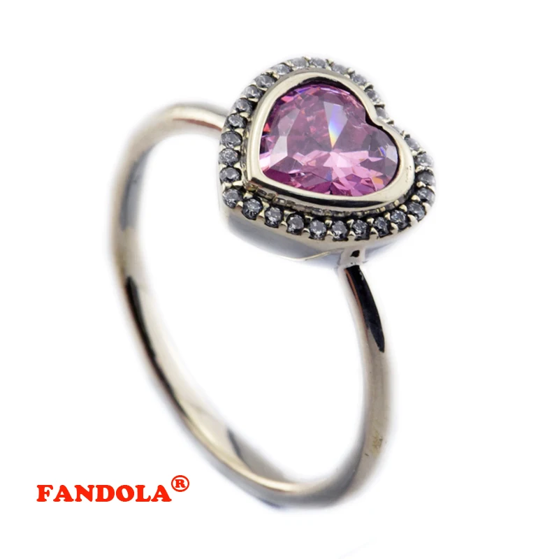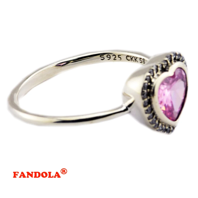 Authentic 925 Sterling Silver Jewelry Heart Ring with Pink Cubic Zirconia