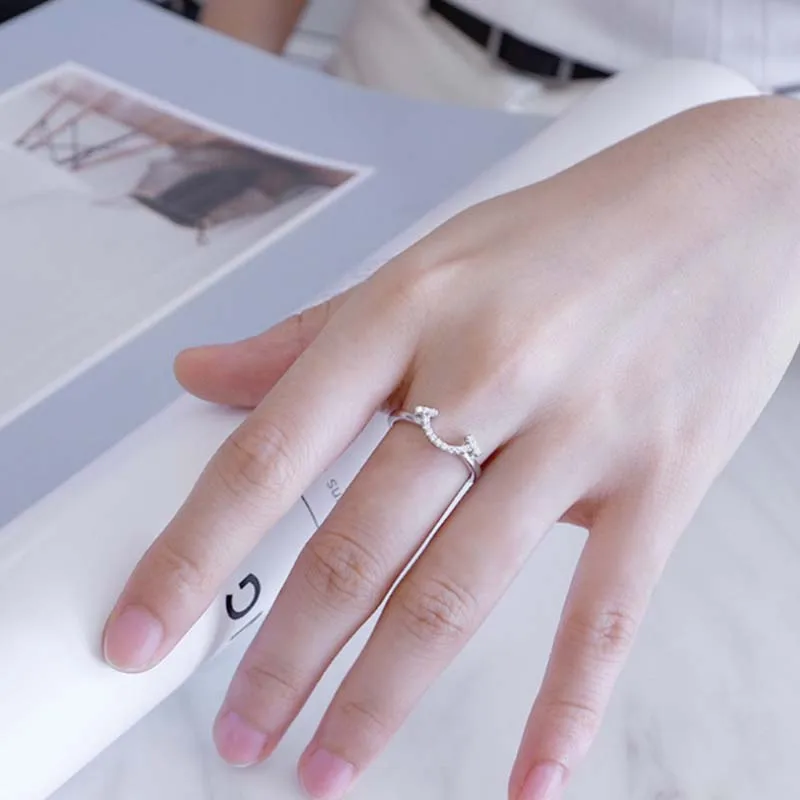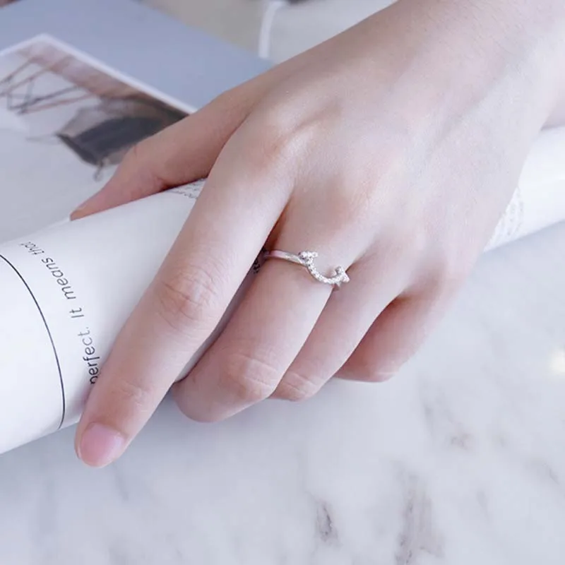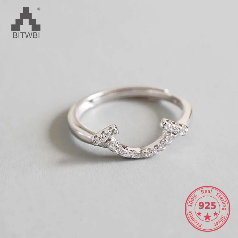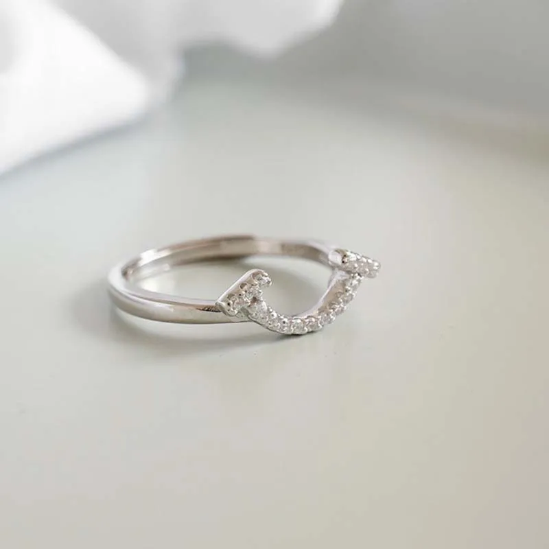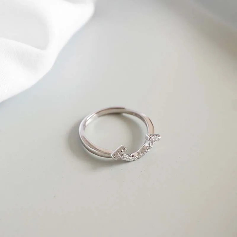 Authentic 925 Sterling Silver Smile Ring with Clear White CZ Stone Adjustable Ring