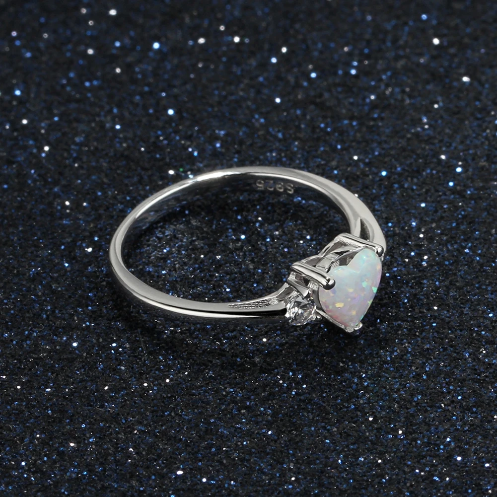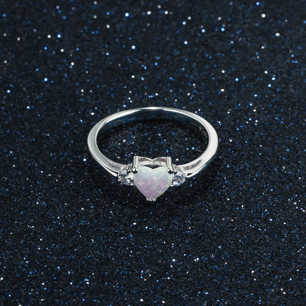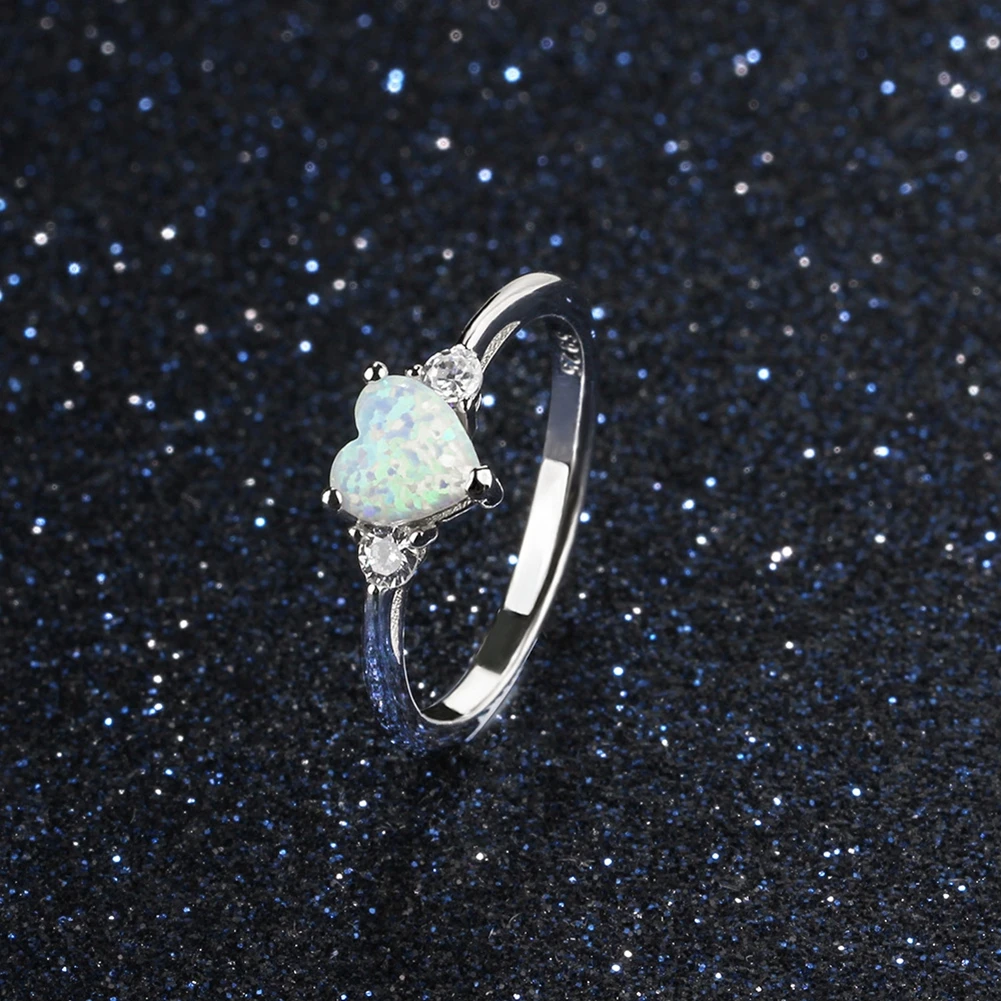 Brand New Fine Jewelry White Fire Opal Heart Ring Fashion Jewelry Solid 925 Sterling Silver Zirconia Rings for Women Gift
