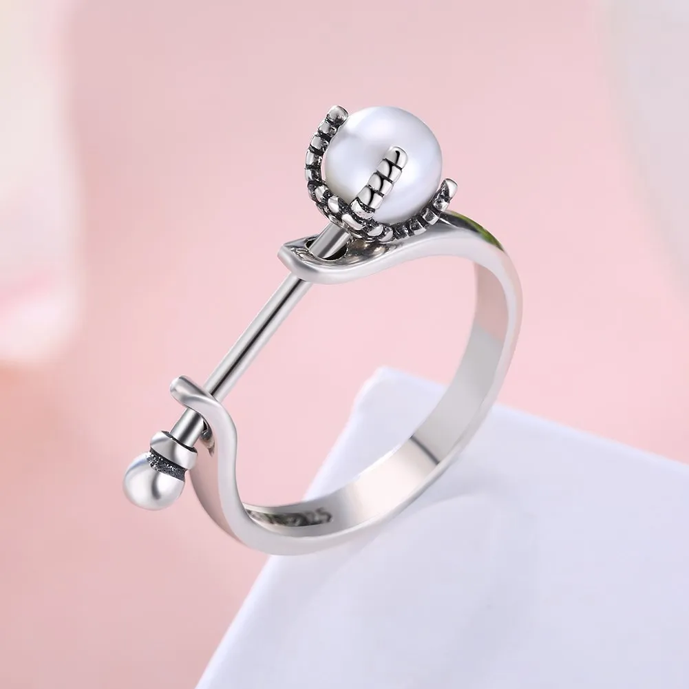 Classic 925 Sterling Silver Ring Claw Scepter with Pearl Open Finger Rings For Women Luxury Silver Jewelry Gifts
