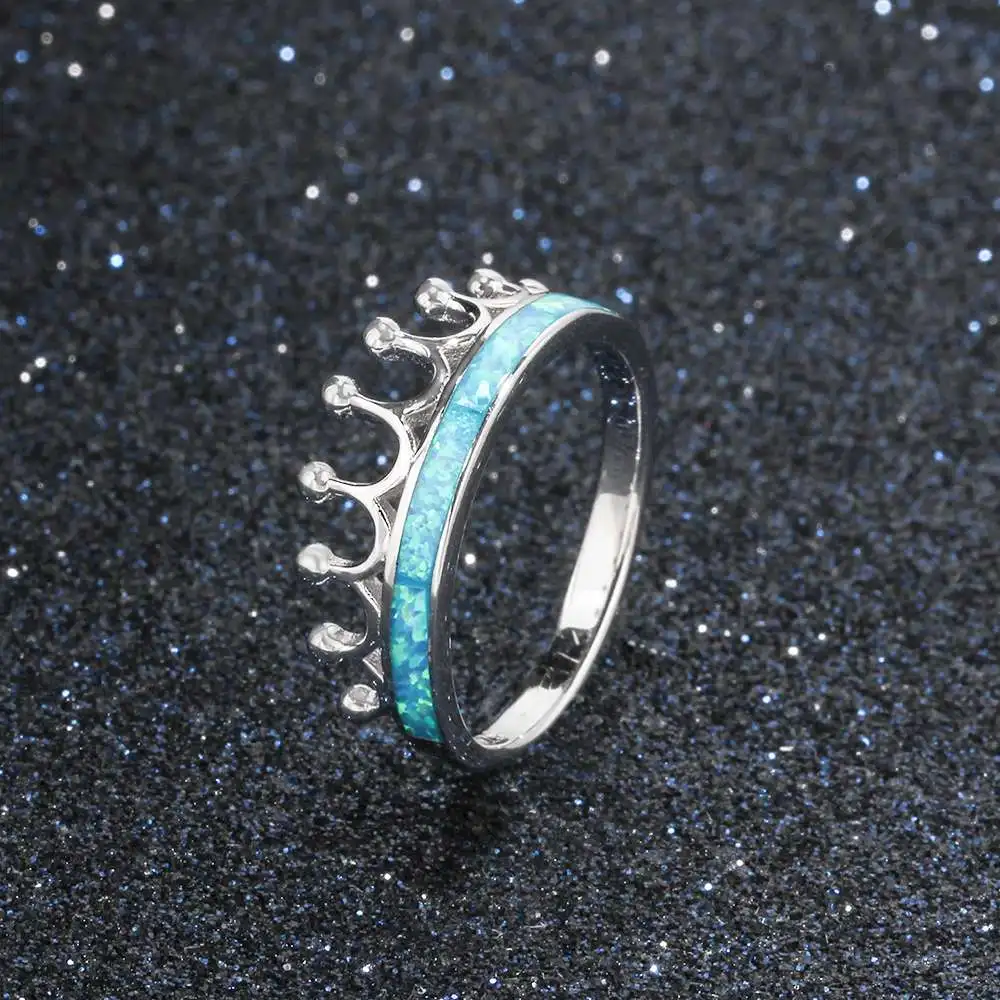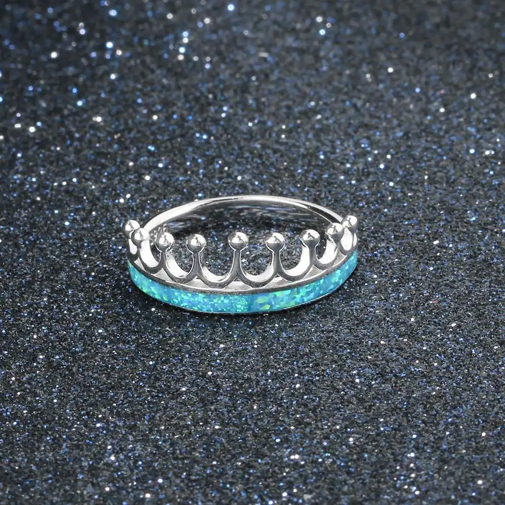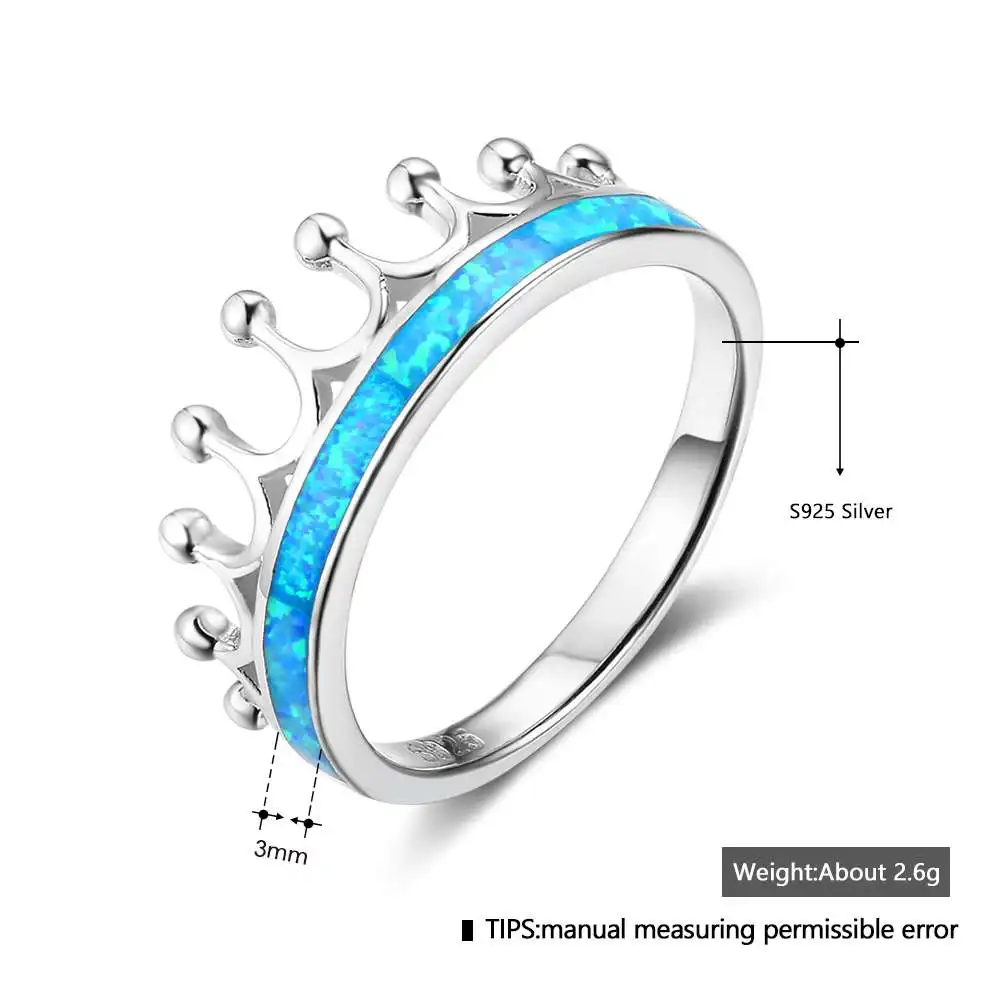 Classic Crown Blue Fire Opal Rings Women 100% 925 Sterling Silver Ring Jewelry Wedding Anniversary Gift For Her (Lam Hub Fong)