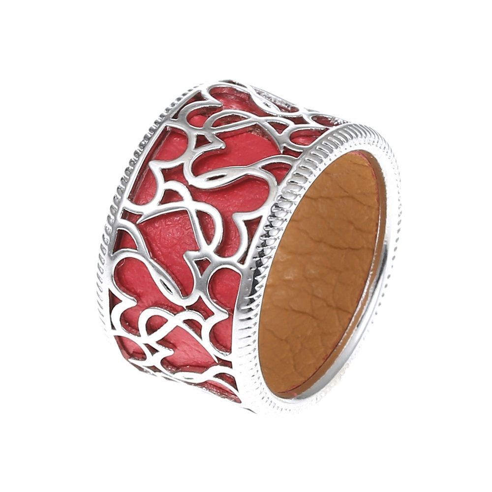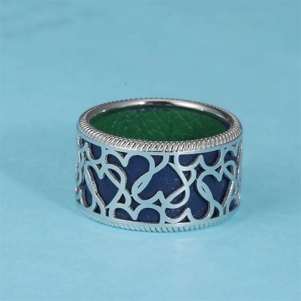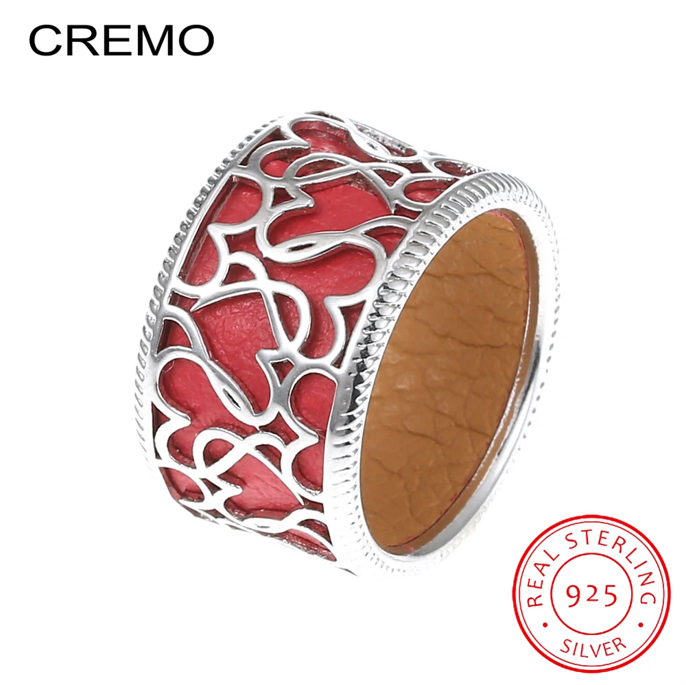 100% Genuine 925 Sterling Silver Ring Heart Hollow Out Design Ring Chic Style Agate Wide For Women Geometric Pink Rings