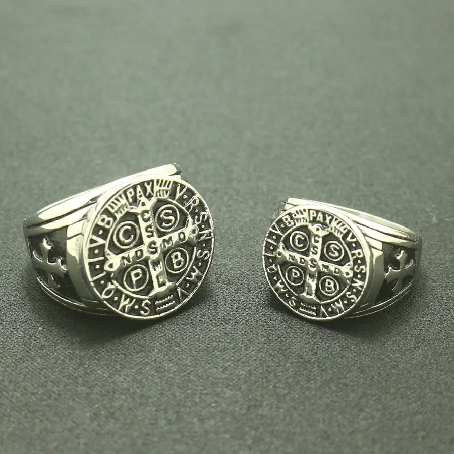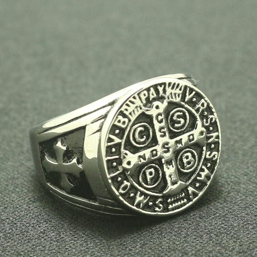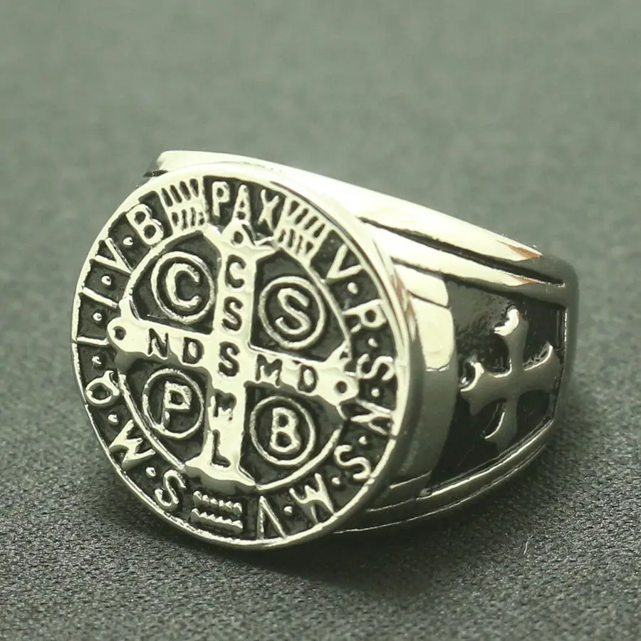 CSPB CSSML NDSMD Unisex 316L Stainless Steel Catholic Church Saint Benedict of Nursia Christianity Jesus Exorcism Ring