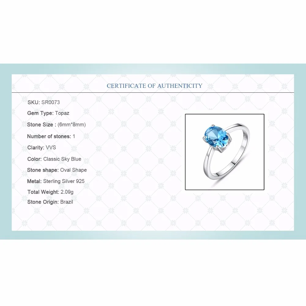 Natural Solitaire Sky Blue Oval Topaz Stone Sterling Silver Ring For Women Fashion S925 Fine Jewelry Finger Band Rings