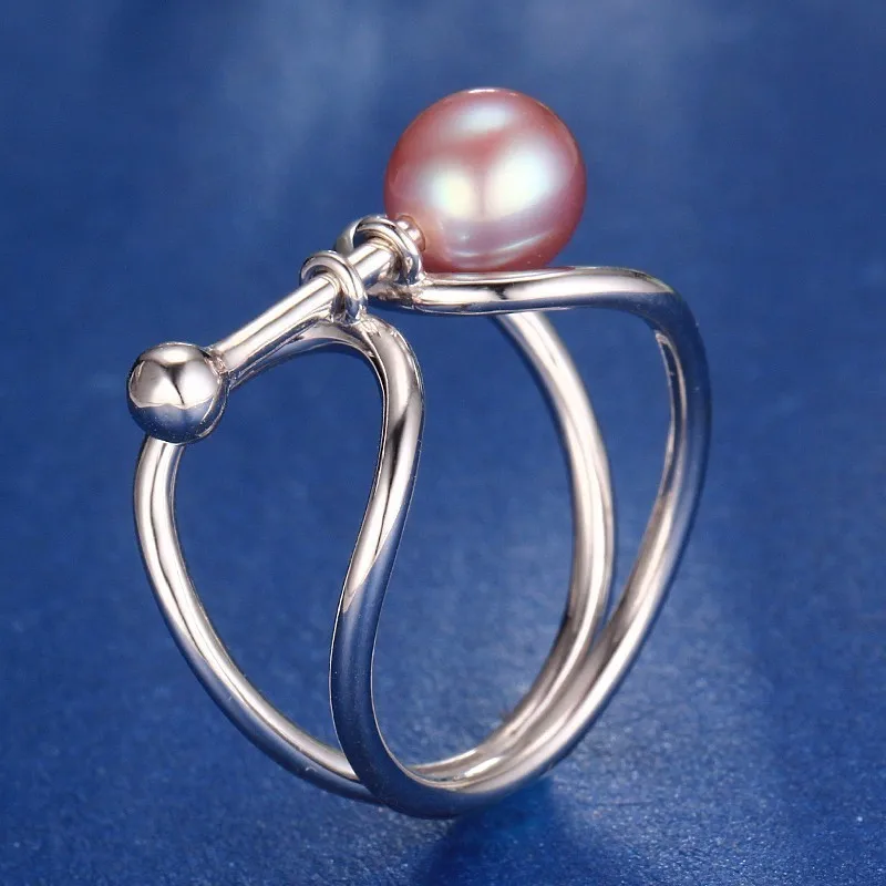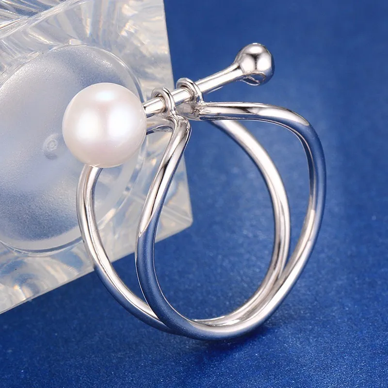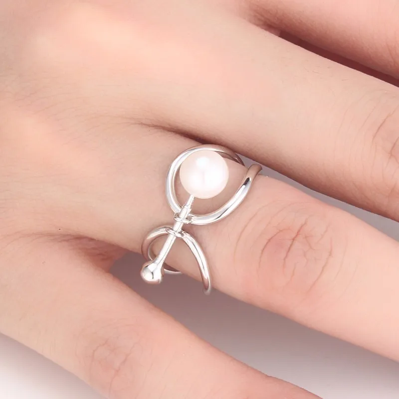 Irregular Shape Pearl Rings like Lock 925 Sterling Silver for Women Natural 100% Real Pearl Rings Jewelry for Gifts