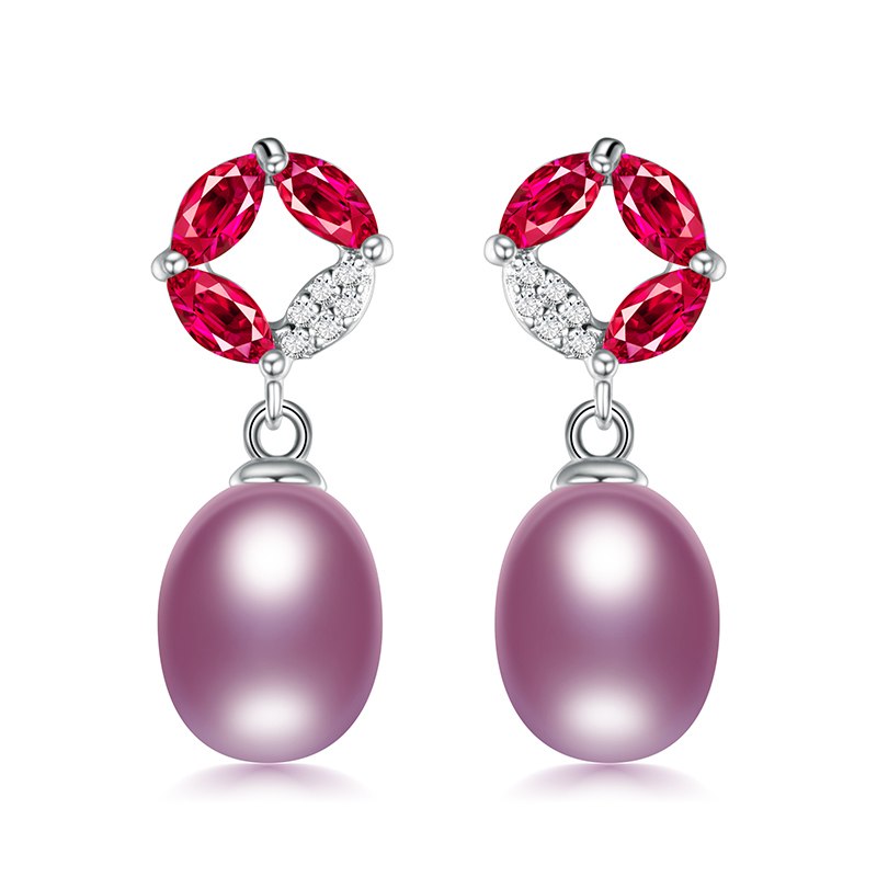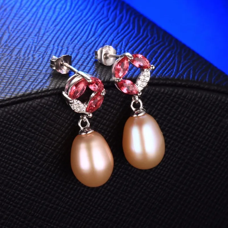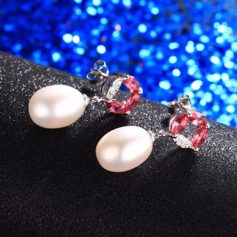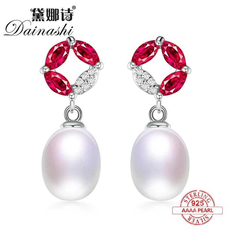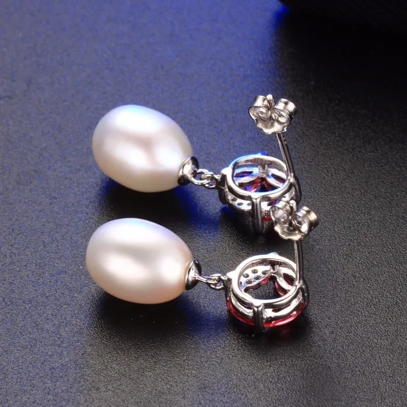 new arrival round classic 925 sterling silver real natural pearl earrings with red garnet fine jewelry