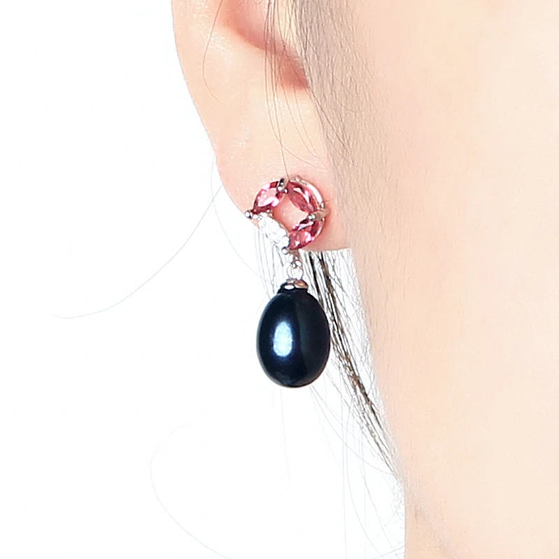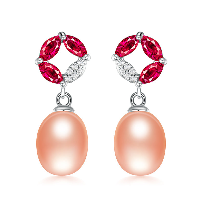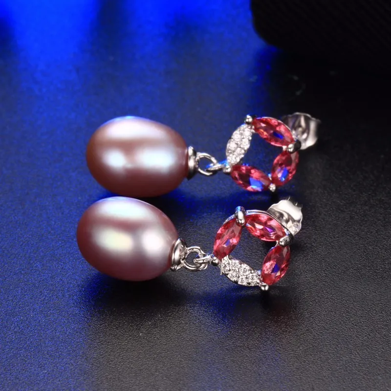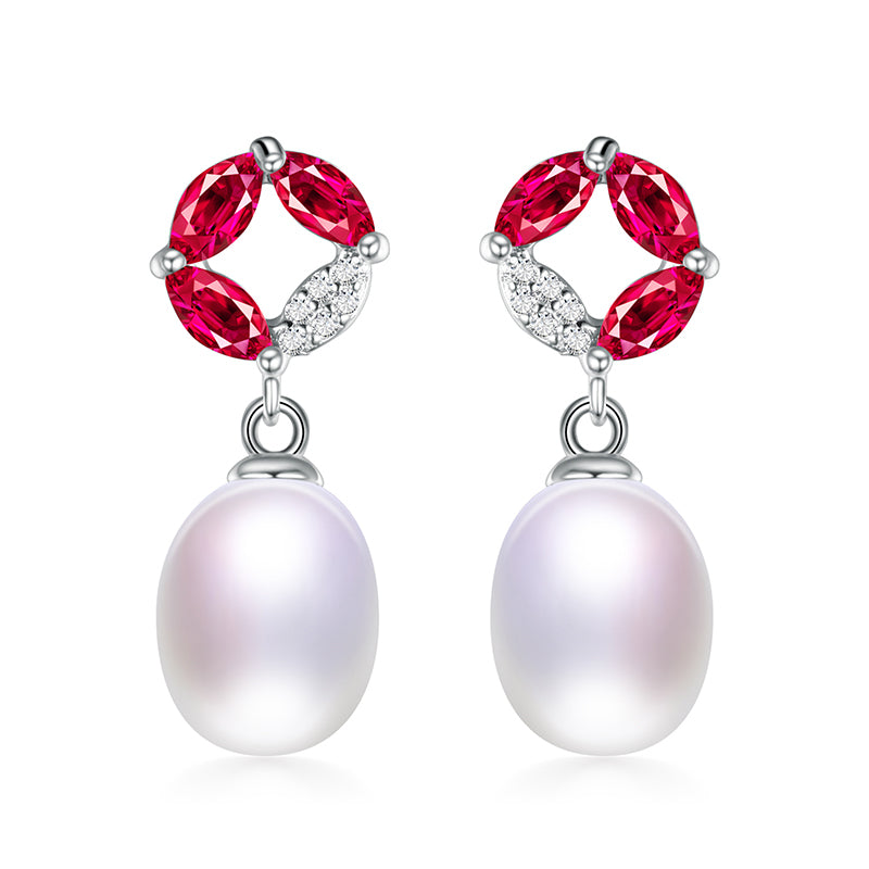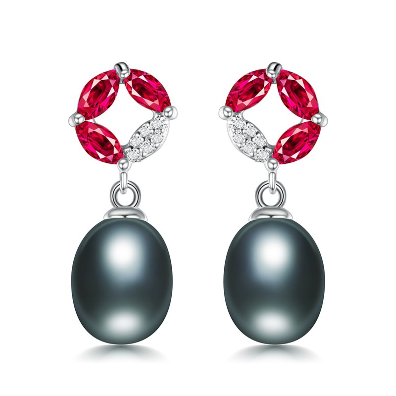 new arrival round classic 925 sterling silver real natural pearl earrings with red garnet fine jewelry