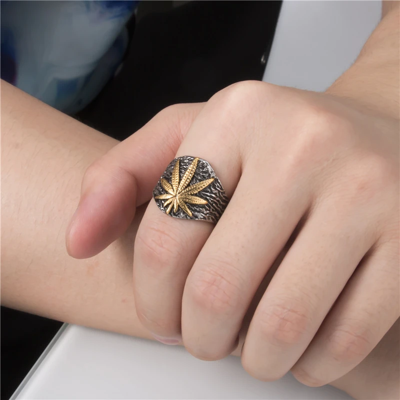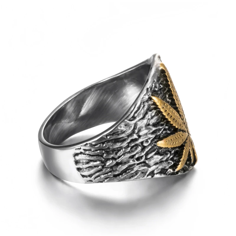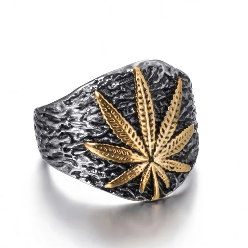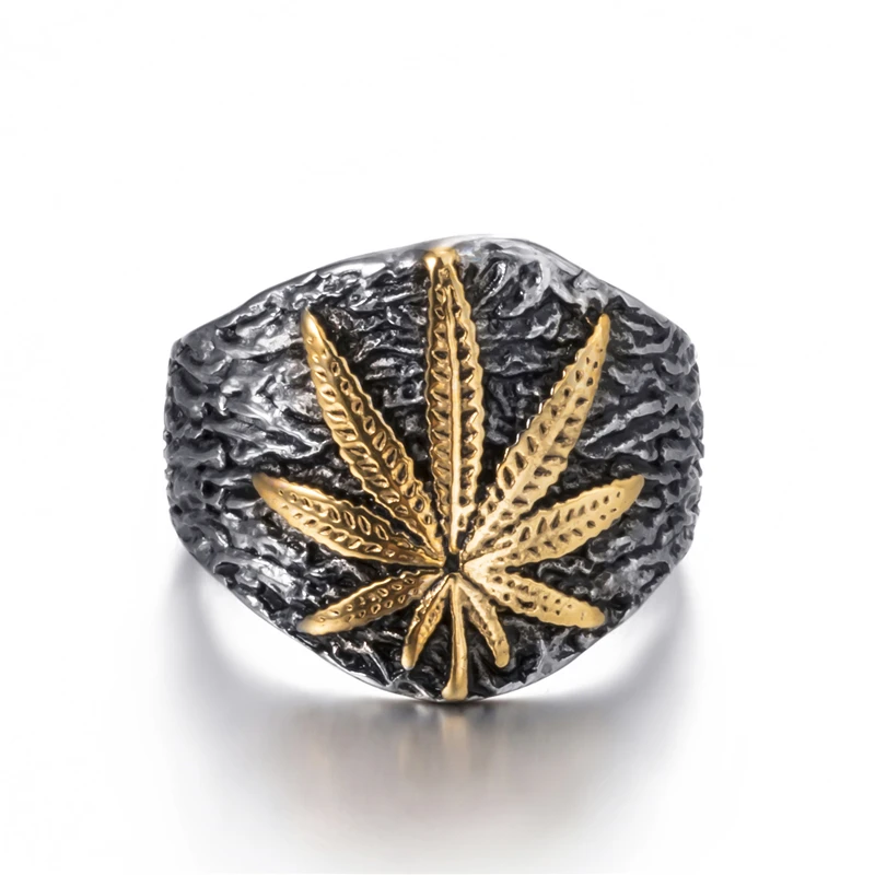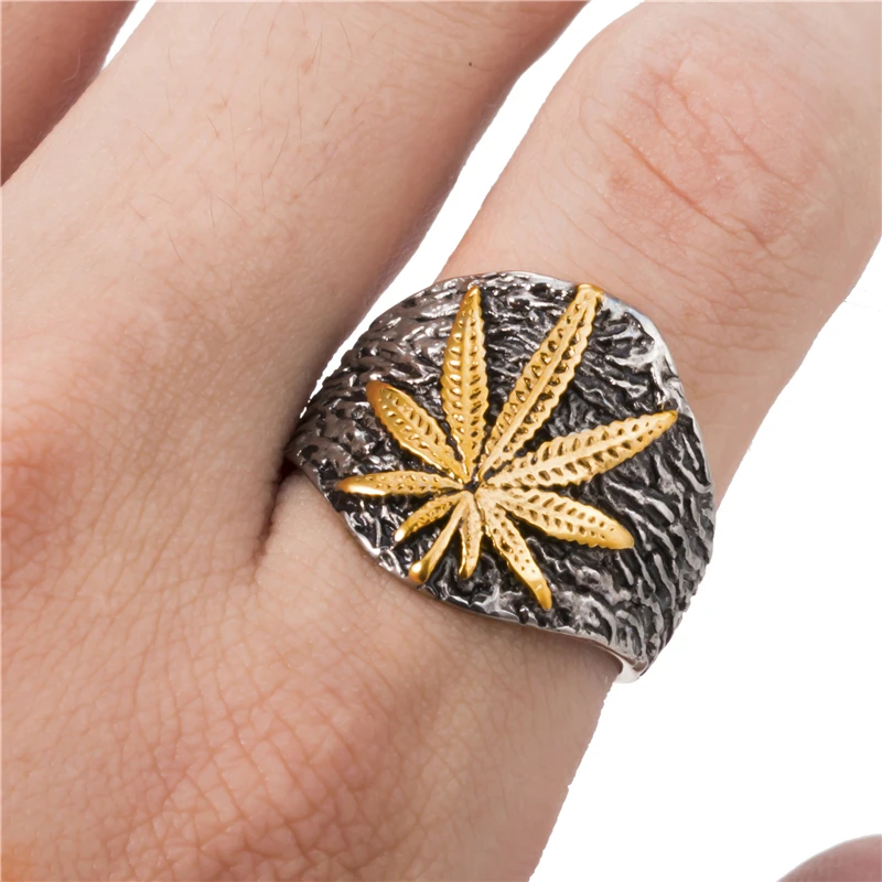 Mens Stainless Steel Ring Weed Marijuana Cannabis Leaf Symb Silver Gold Fashion Jewelry Size 8-13