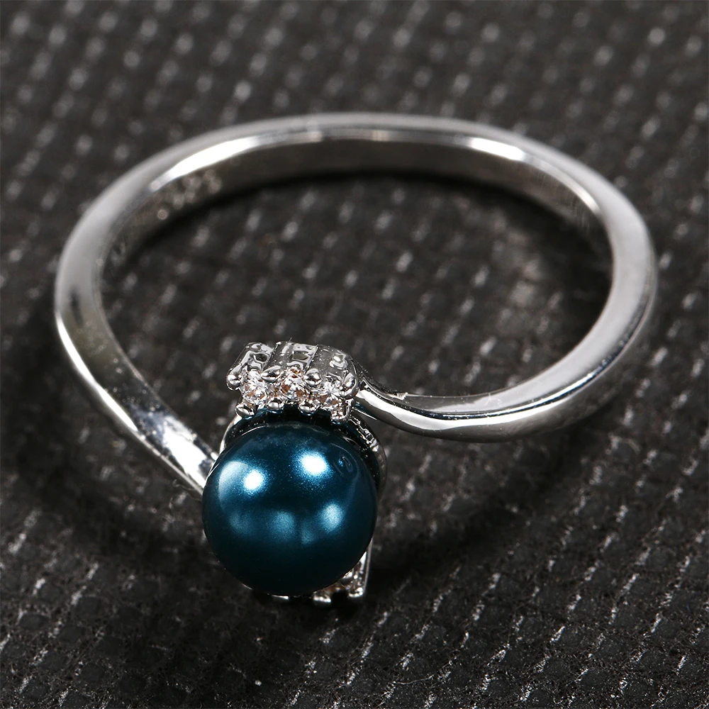 Fashion Elegant Pearl Rings For Women Natural Peacock blue Pearl Ring Party 925 Sterling Silver Jewelry Present Gifts