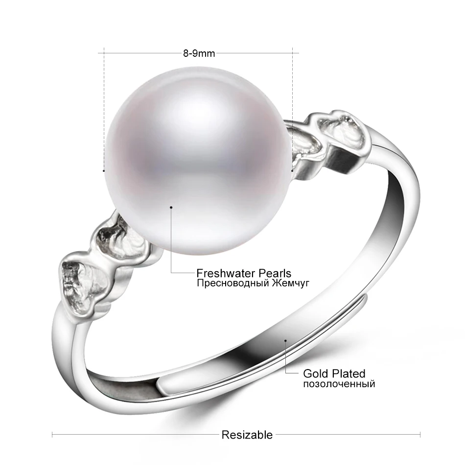 Wholesale Classic Style Pearl Ring for Women 8-9MM White Pearl Finger Rings Fine Jewelry Gifts Drop Shipping