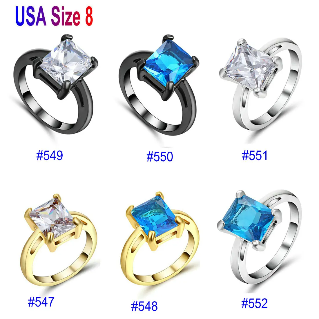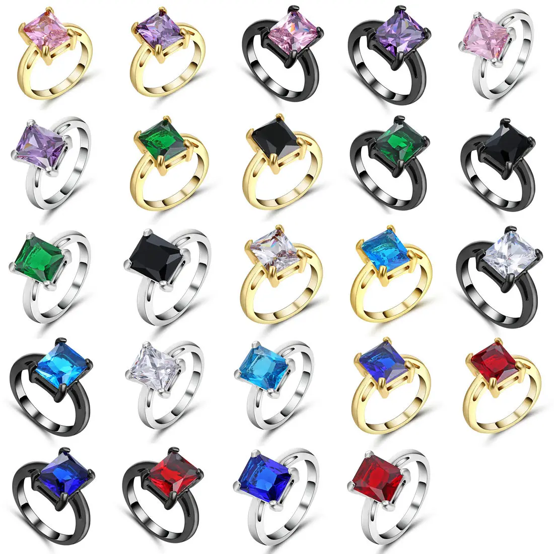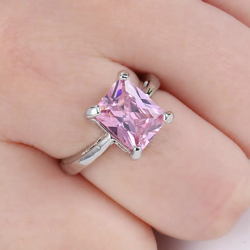 Fine Jewellery Silver Gold Colour Rings for Factory Womens Engagement Rings Fashion Jewelry Large Rectangle Crystal Promise Ring