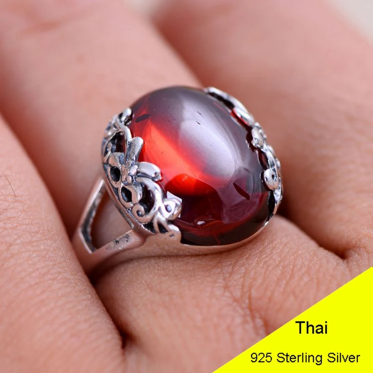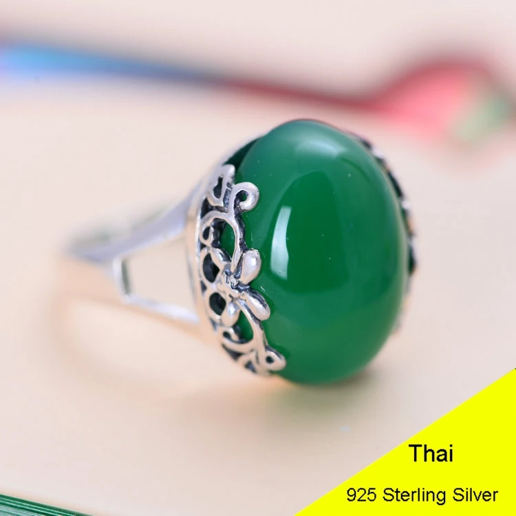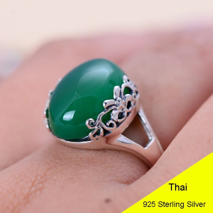 Green Agate & Red Garnet 925 Sterling Silver Retro Ring Women Thai Silver Fine Jewelry Gift Finger Ring CH051015